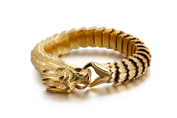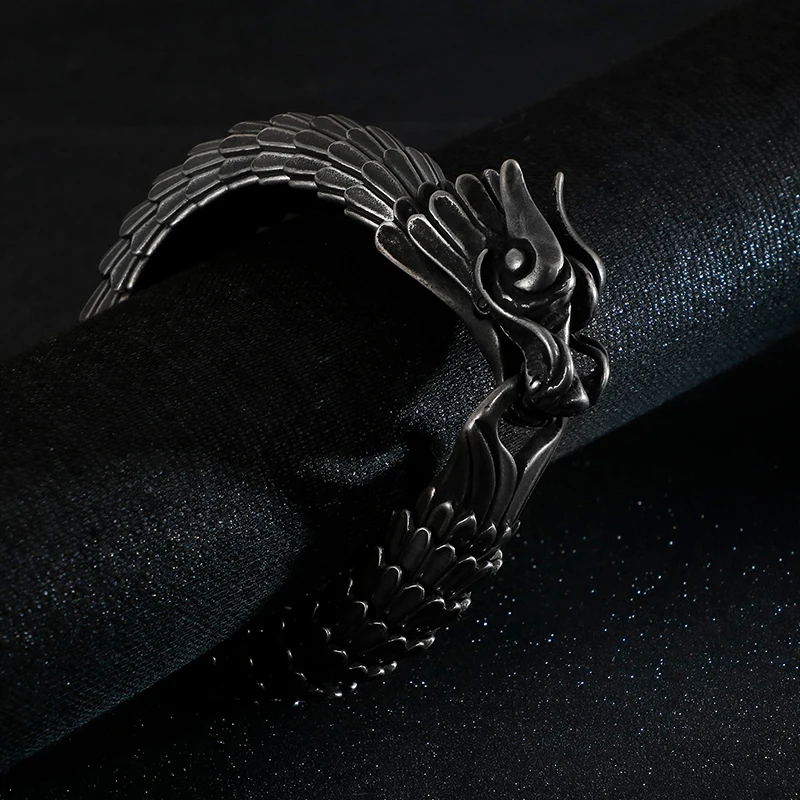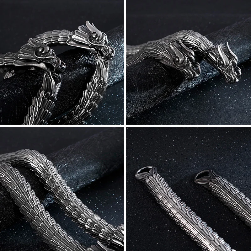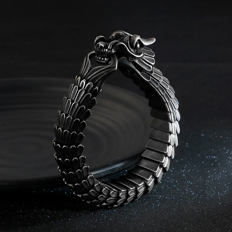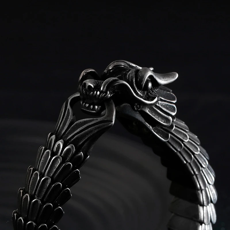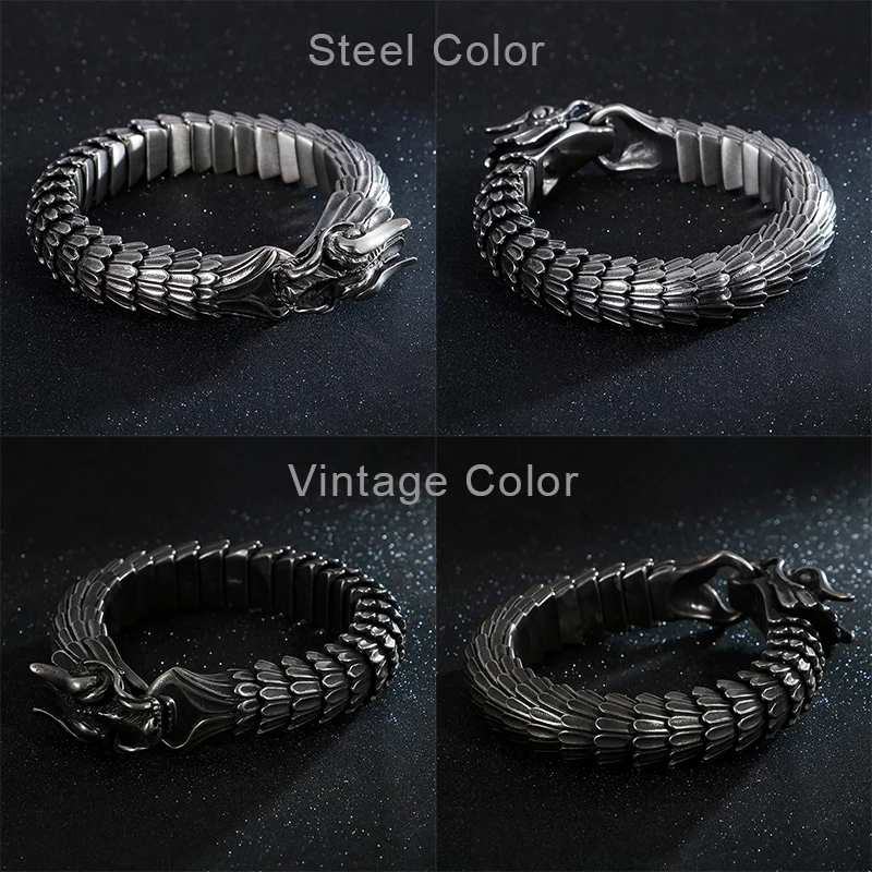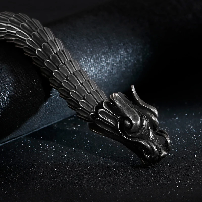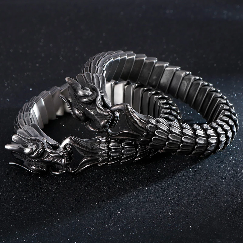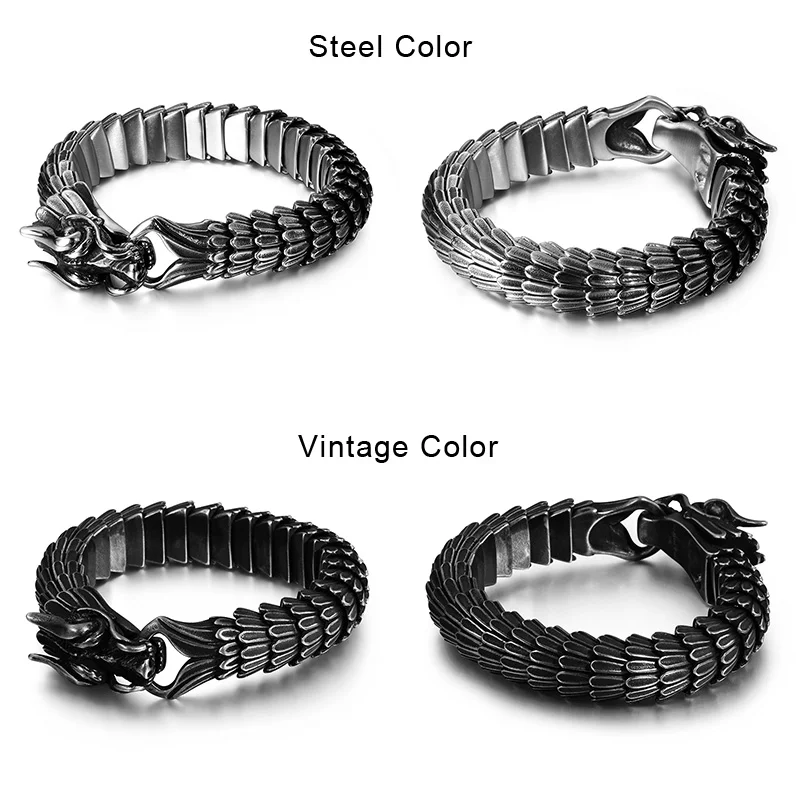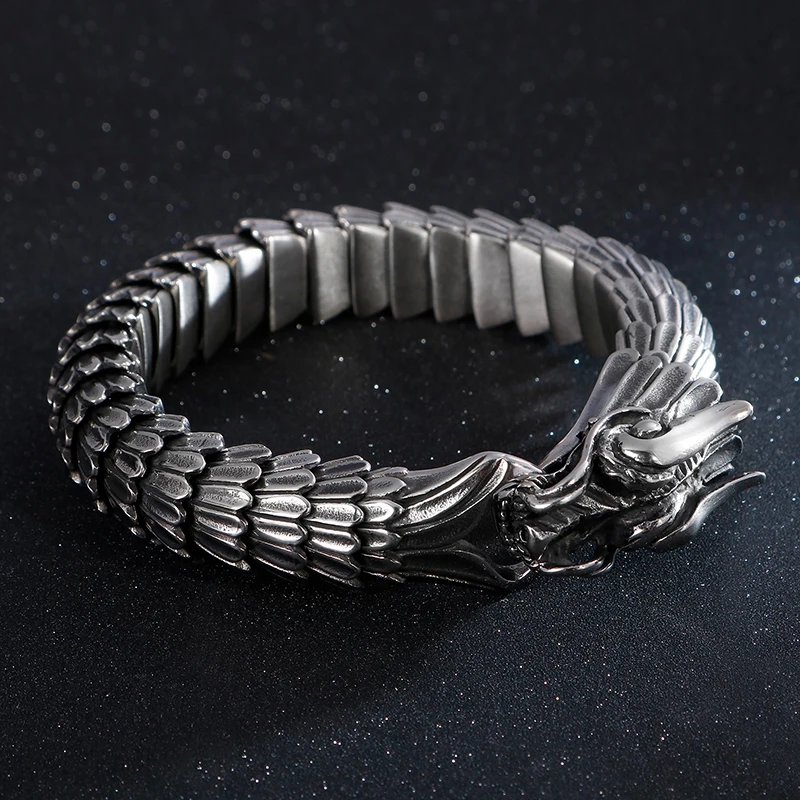 Fongten Dragon Link Chain Bracelet Men Biker Viking Stainless Steel Punk Mens Old Metal Vintage Bangles Jewelry Gift 2020