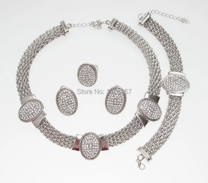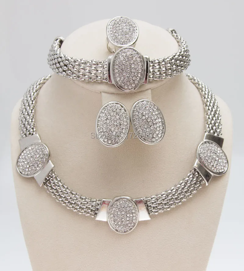 Free Shipping 2020 Oval Shape Silver Plated Clear Crystal Jewelry Set New Fashion Wedding Bridal African Costume Jewelry Sets