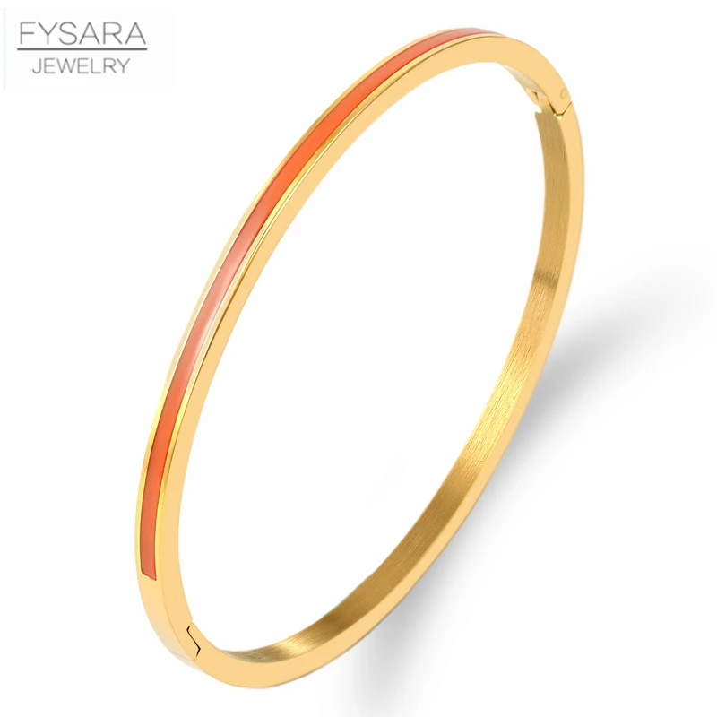 Item:FYSARA 3mm Thin Colorful Orange Enamel Bangles Bracelets for Women Party Fashion Bangles 361L Stainless Steel Jewelry 7 Color