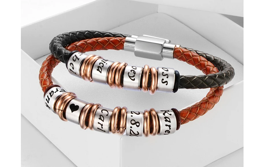 ❤️ Personalized Women Mens Leather Bracelet Customize Names Leather Bracelet Family Friendship Gifts ❤️