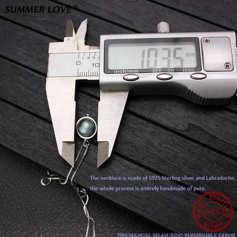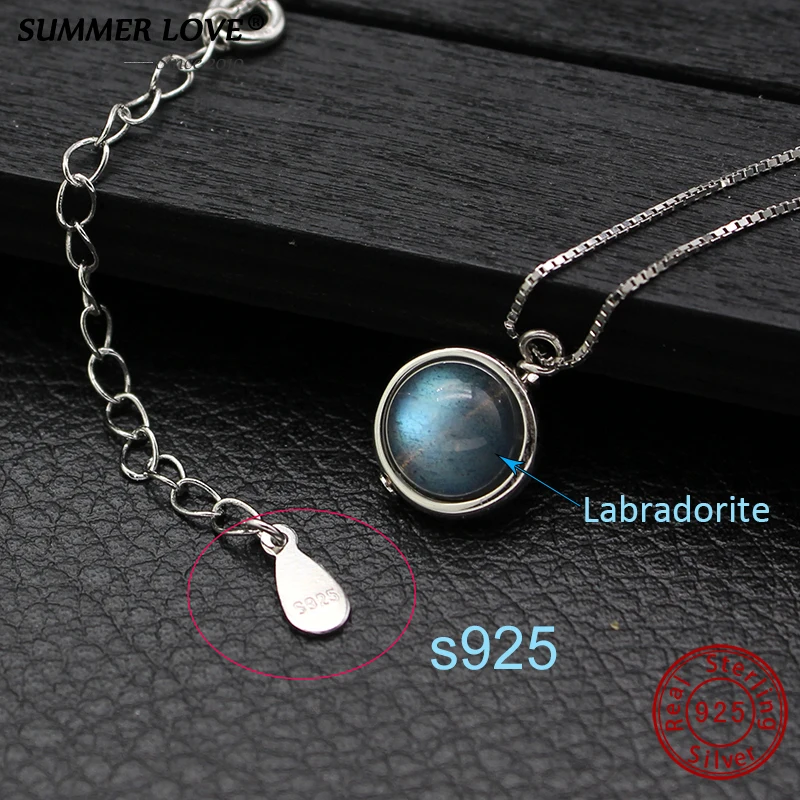 Genuine S925 Sterling Silver Labradorite Pendant Necklace For Women Fine Jewelry Nature Gemstone Handmade bijoux femme