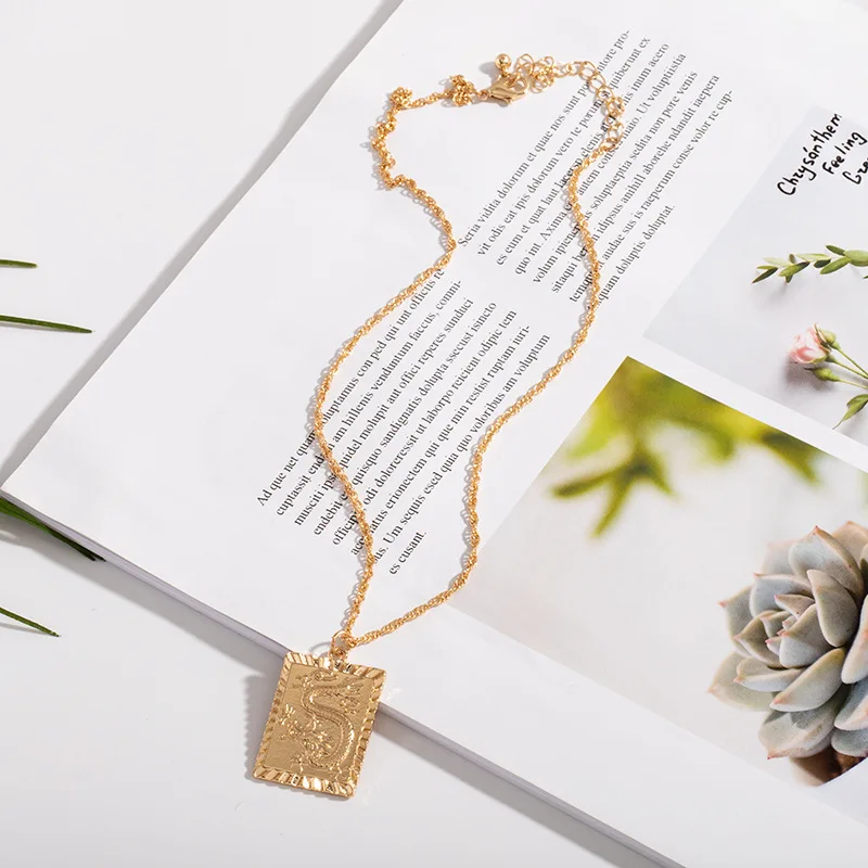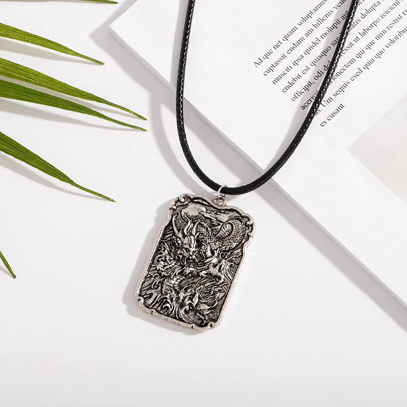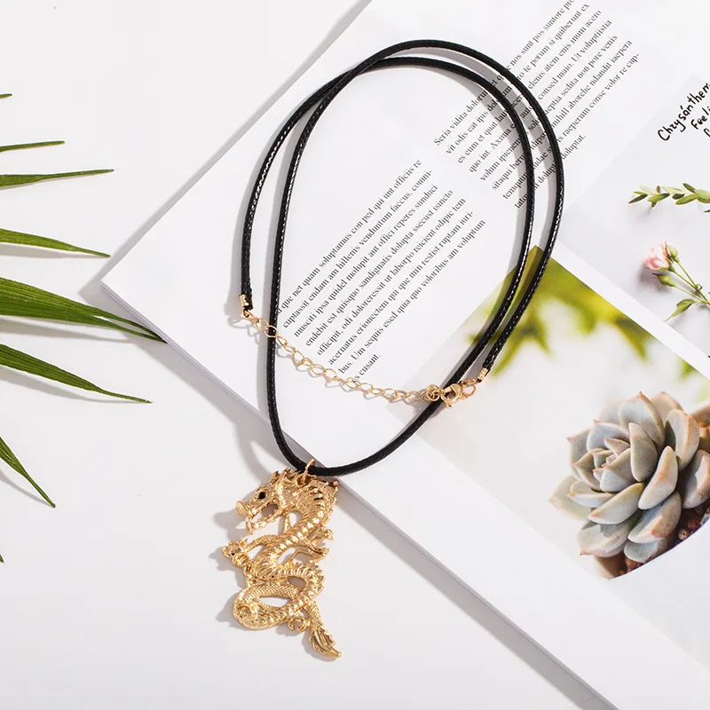 Gold Chain Chinese Dragon Animal Men Pendant Choker Necklace Korean Fashion Black Cord Jewelry Minimalist Minimalism Accessories