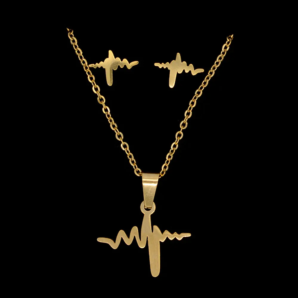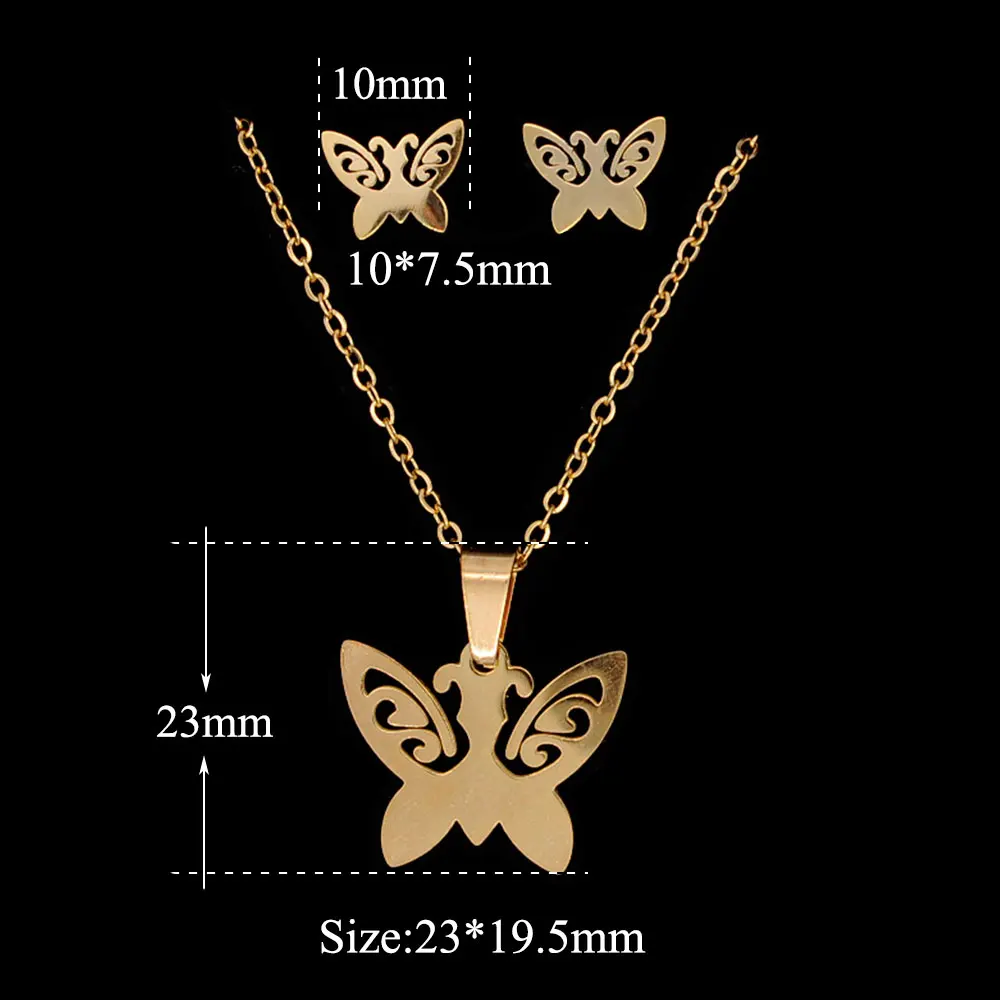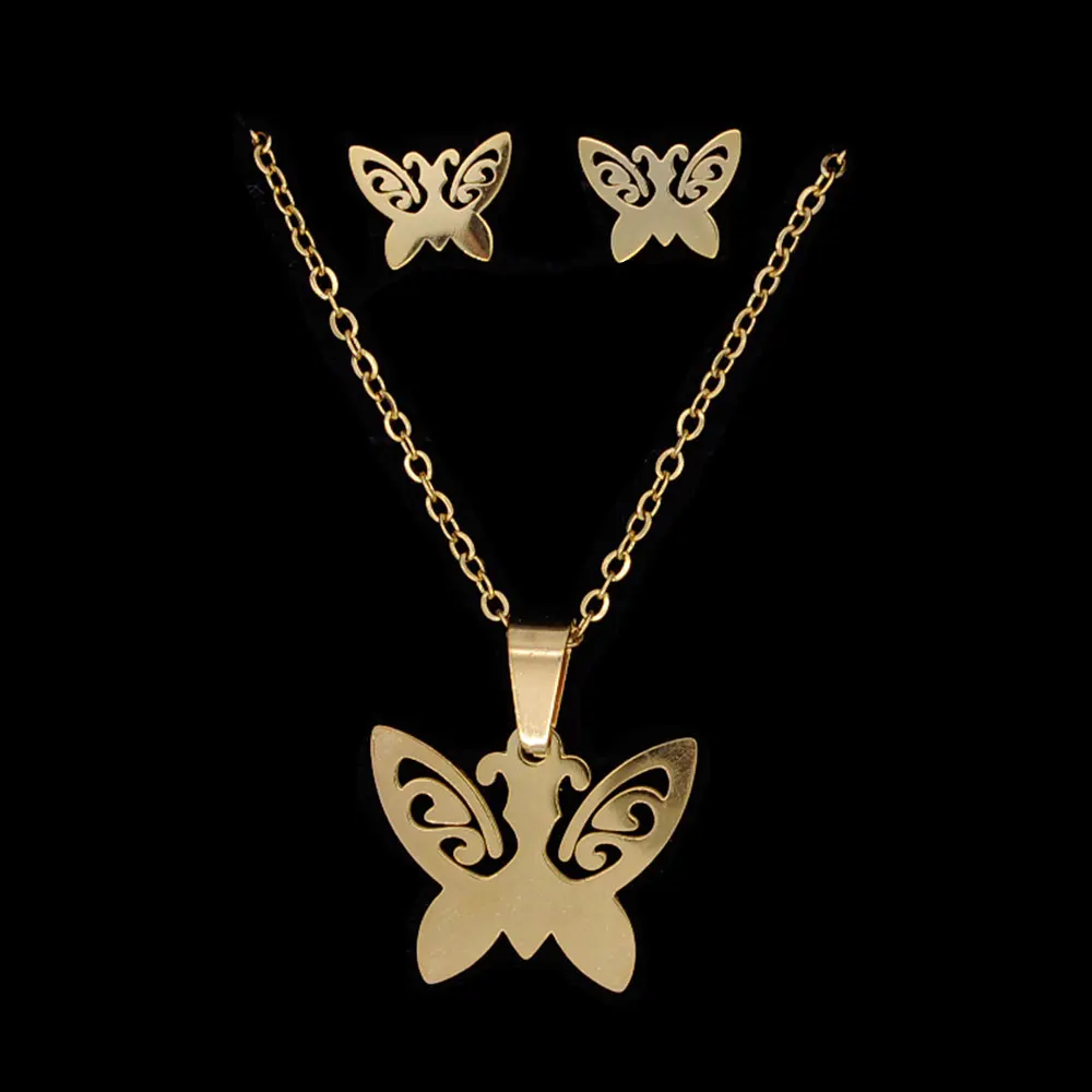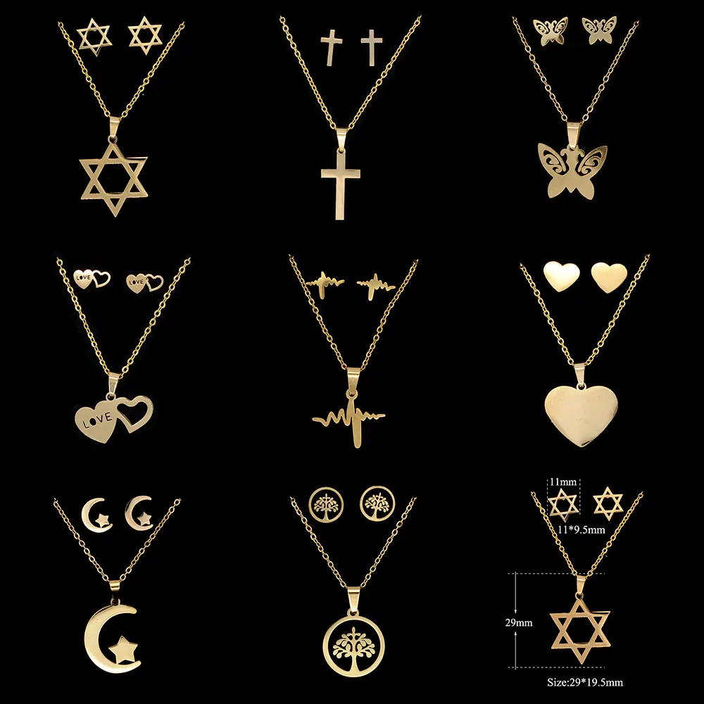 Gold Filled Necklace & Earrings Set Stainless Steel Mirror Polish High Quality Cross, Star of David Heart Lightning Butterfly