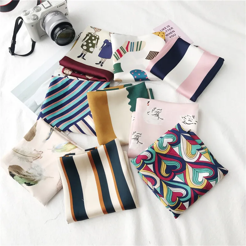 Hair Scarf Tie Animal Print Luxury Satin Small/Square/silk/Neck/Ring/Scarf Winter Head Scarf For Wome Neckerchief Fashion 2018