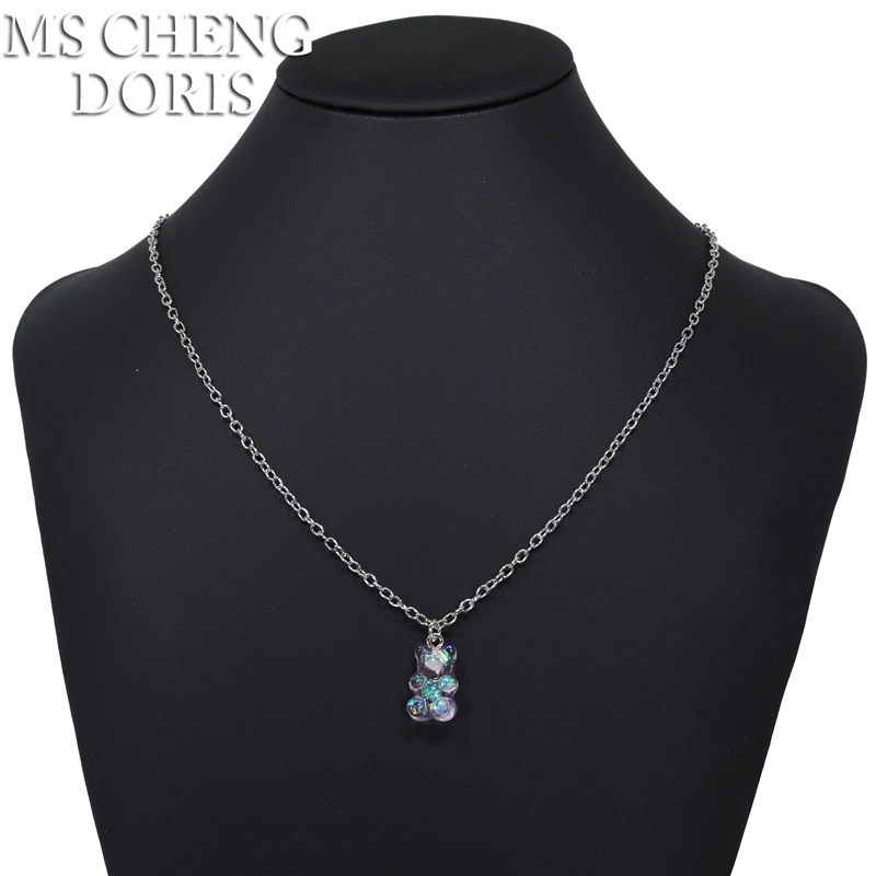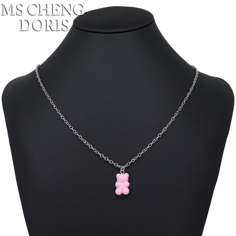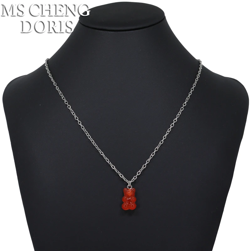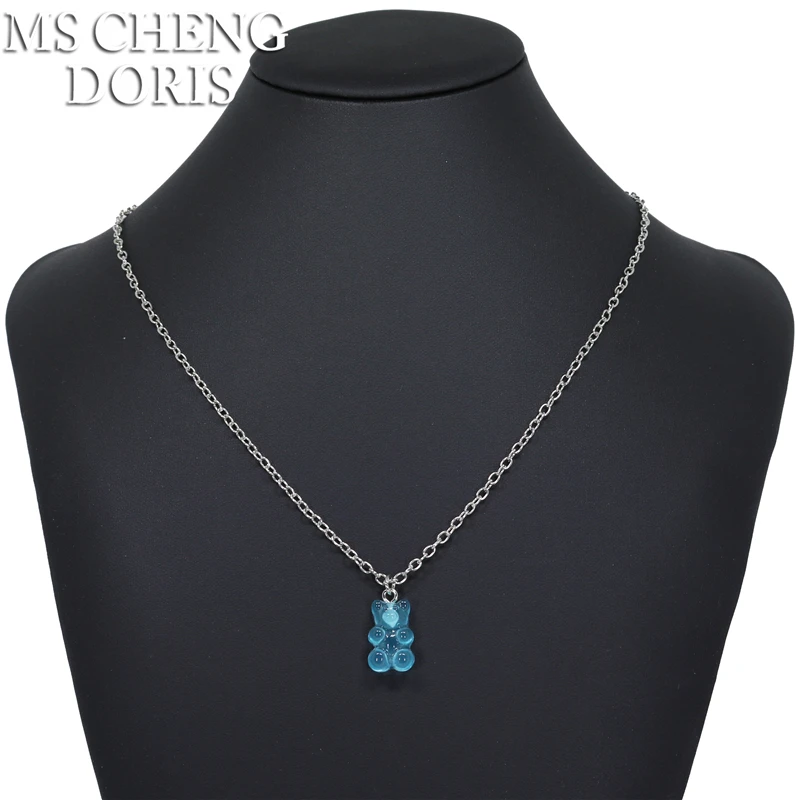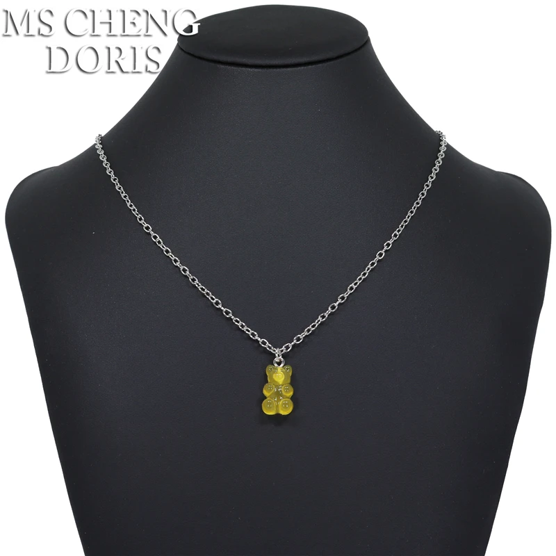 Handmade 33 Styles Colors Cute Resin Gummy Bear Chain Necklaces, Candy Color Pendant For Women&Girl Daily Jewelry Party Gifts