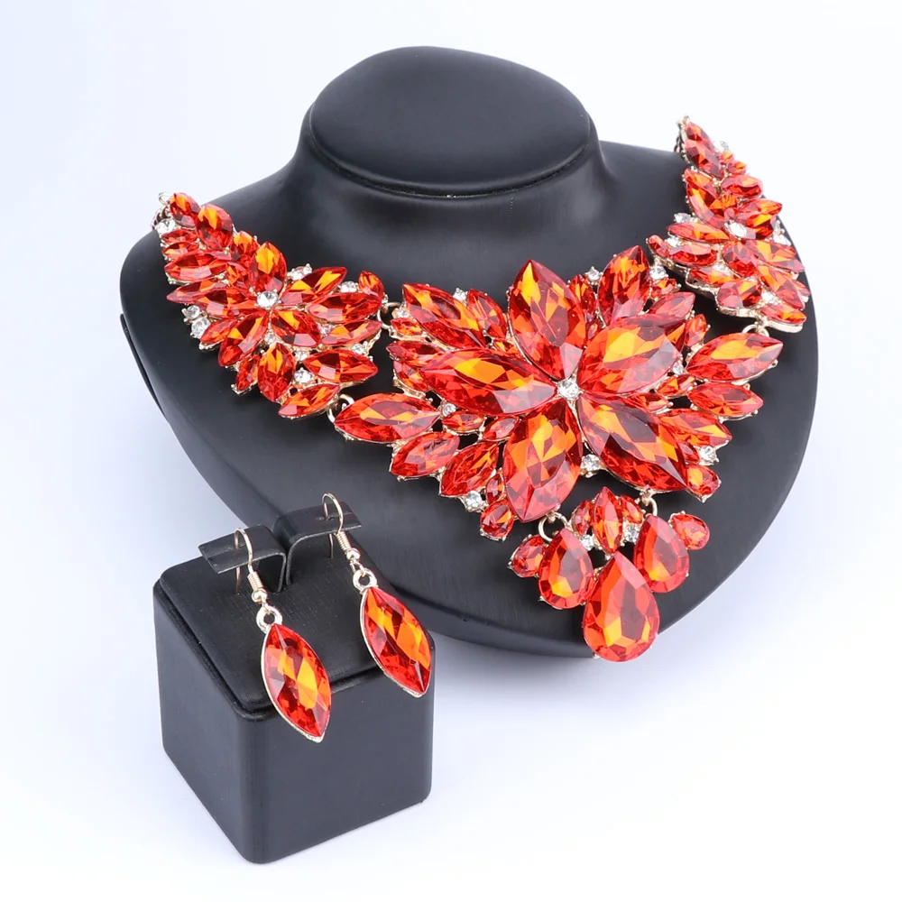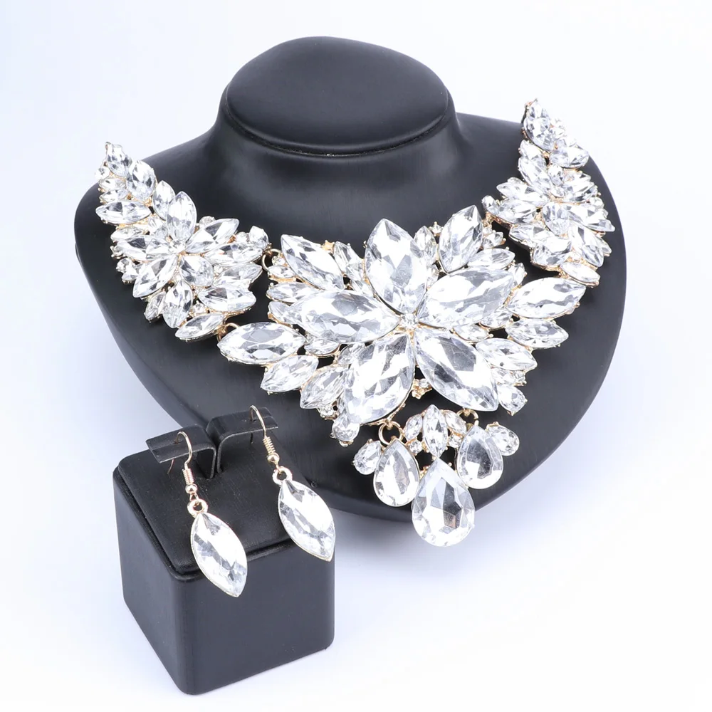High Quality Crystal Choker Statement Necklace Earring Jewelry Set Rhinestone Wedding Gift Women Brides Prom Party