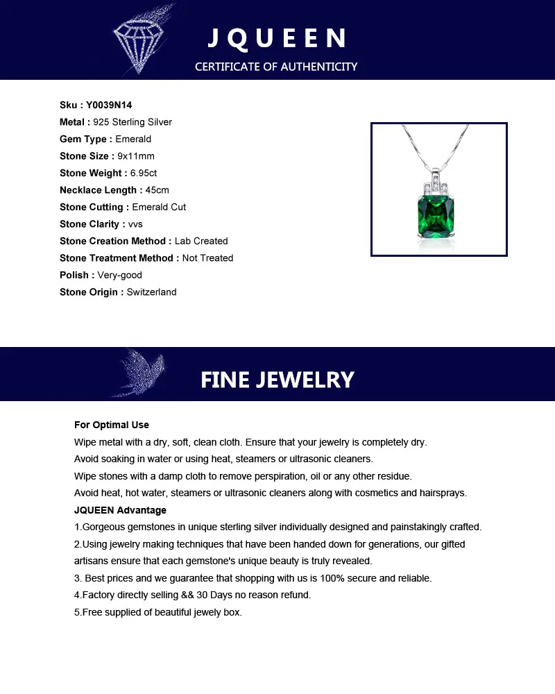 High Quality Emerald Necklace Jewelry 6.95ct Pendant Necklace Vintage Silver 925 Sterling chain jewelry accessories best friend