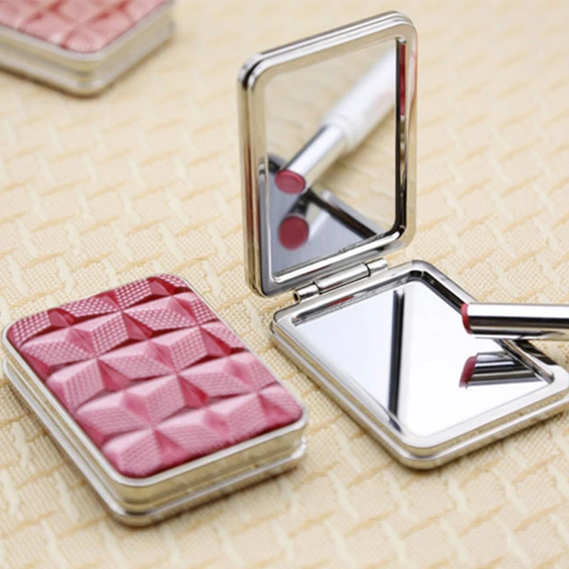 1Pc Portable Makeup Mirror Solid Color Metal Round Case Double-Side Pop-Up Pocket Mirror Beauty Accessories Rose Gold