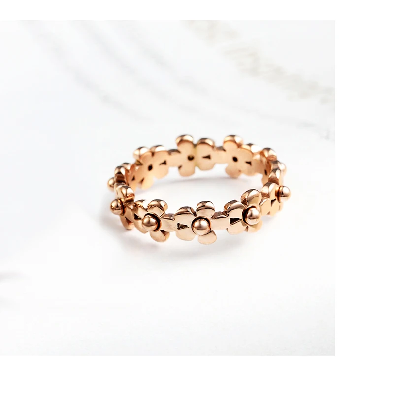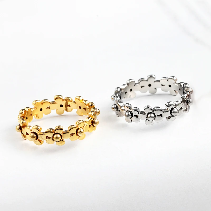 Hot Sale High Quality Stainless Steel Little Chrysanthemum Connected Exquisite Ring For Women Daisy Rings For Lover Present Gift Jewelry Ring Wholesale