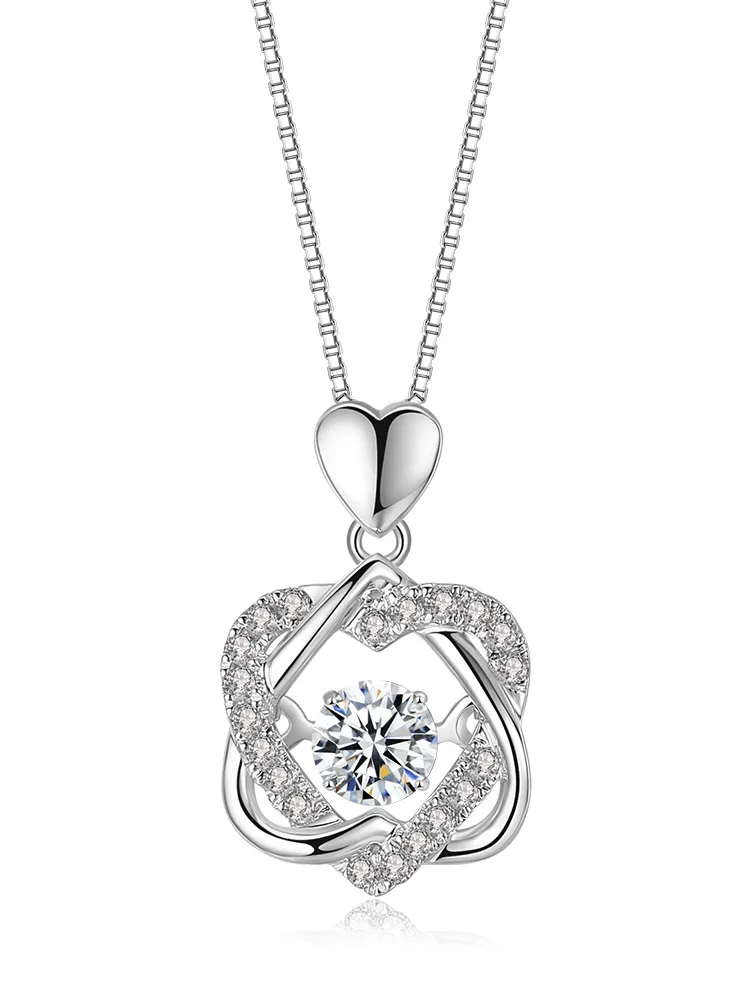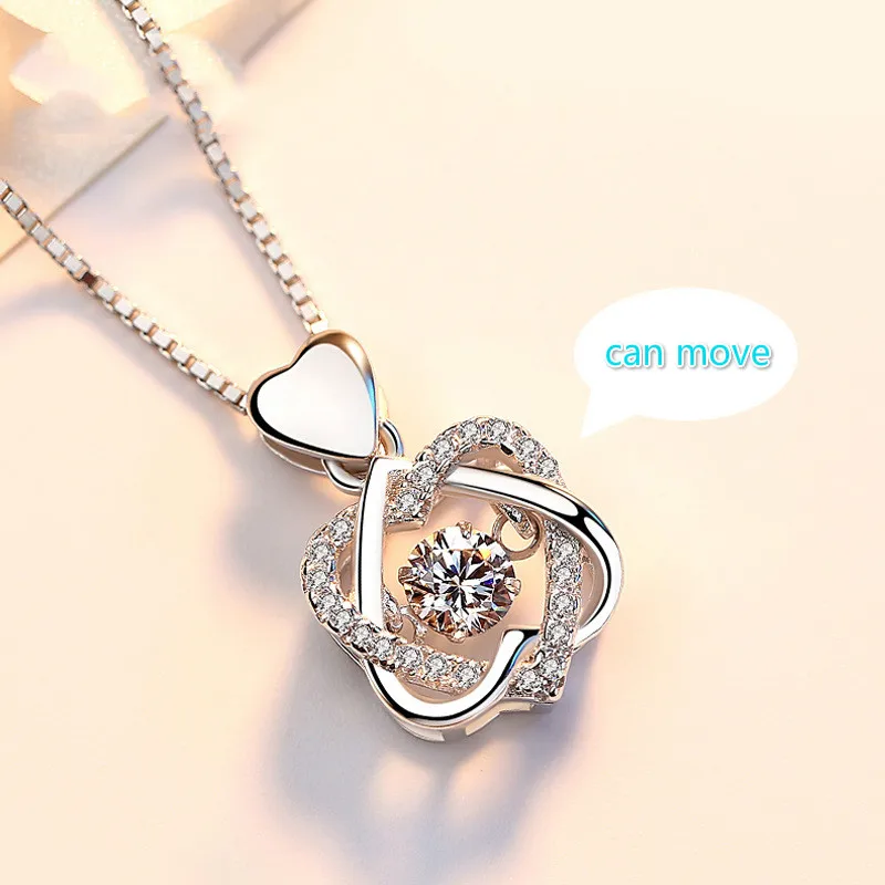 Hexameron Heating Heart Necklace Sterling Silver Women Moving Zircon Heart Necklaces Christmas Gift