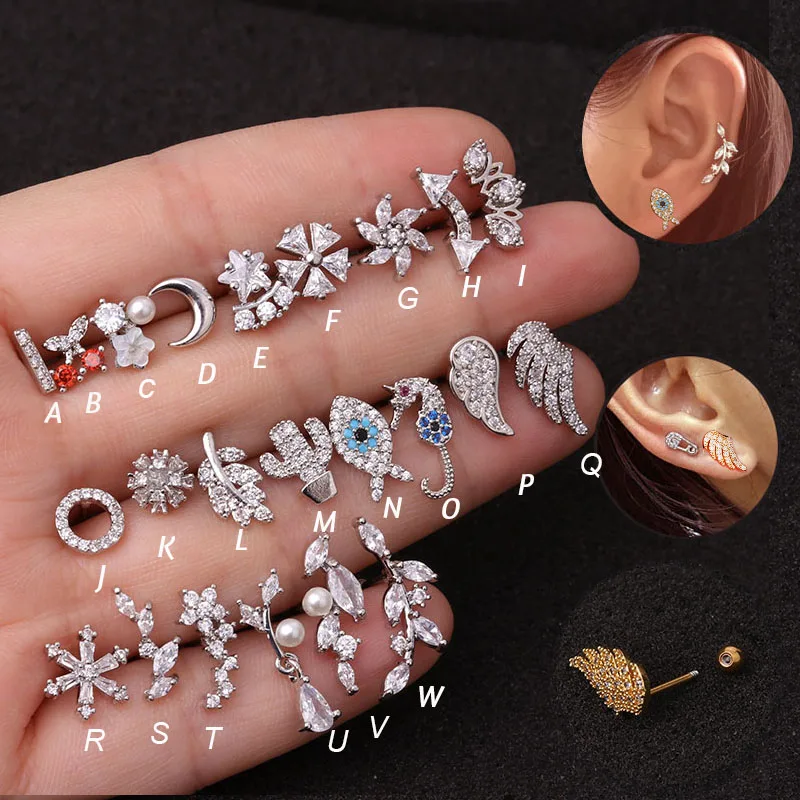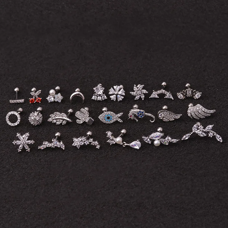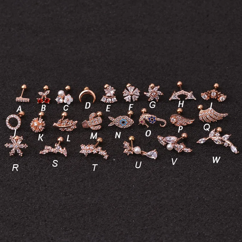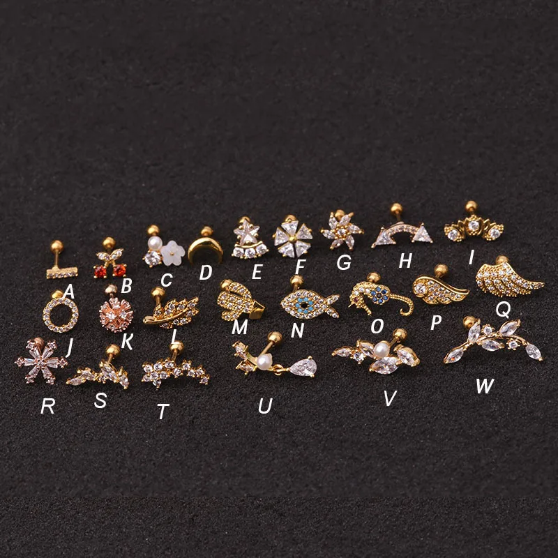 Hot 1piece Steel Copper Fish Hand Tree CZ ear piercing jewelry steel barbell daith earrings helix cartilage studs Piercing