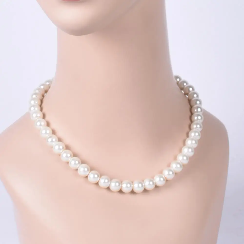 HOWAWAY Round Imitation Pearl Necklace Wedding Pearl Necklace for Brides White Choke necklace for handmade pearl