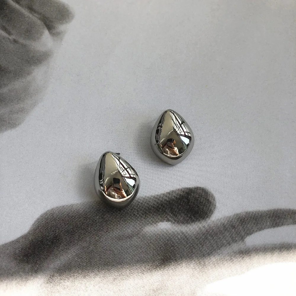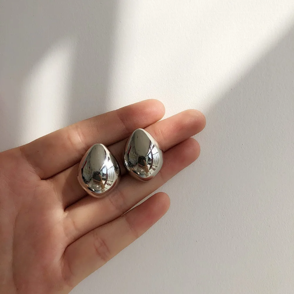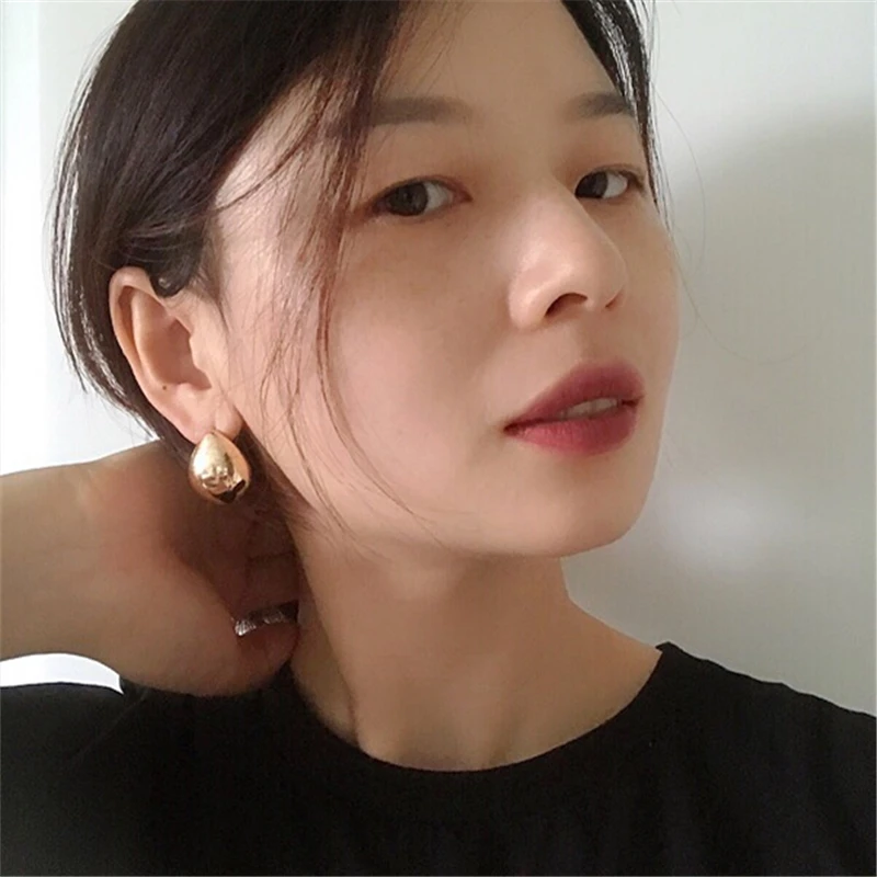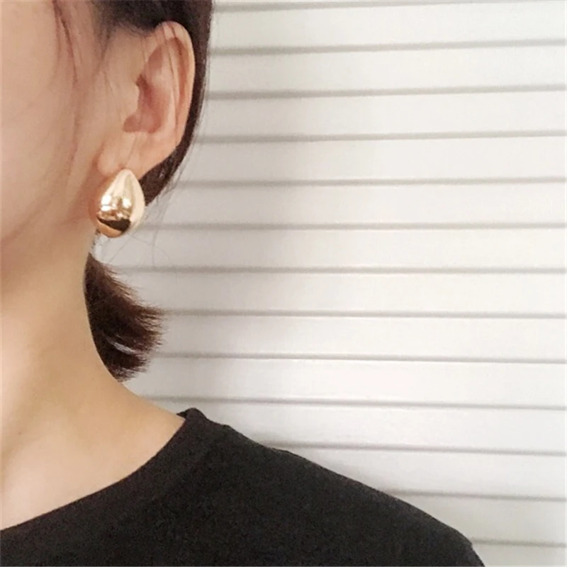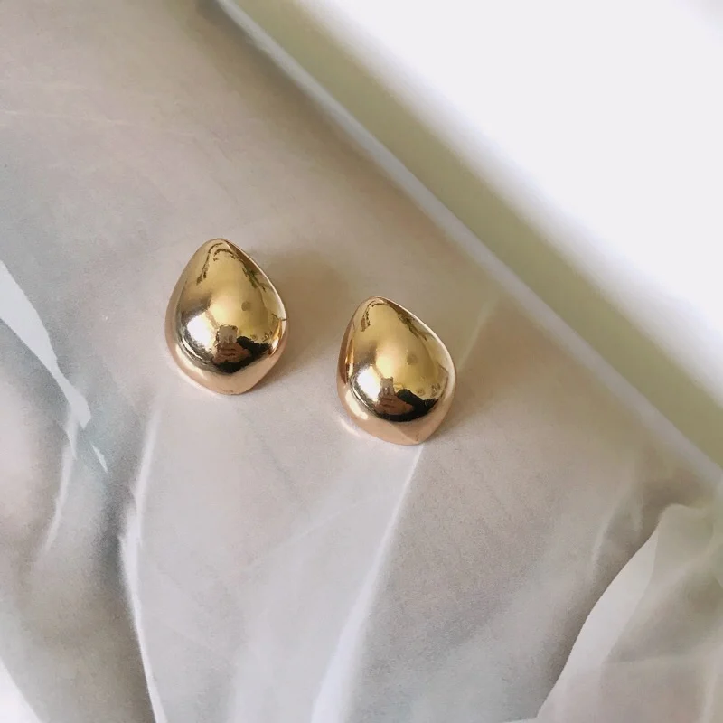 HUANZHI 2019 New Geometric Water Droplets Smooth Simple Retro Metal Stud Earring for Woman Girls Party Holiday Accessories