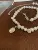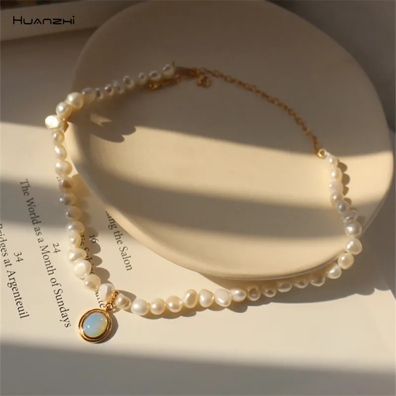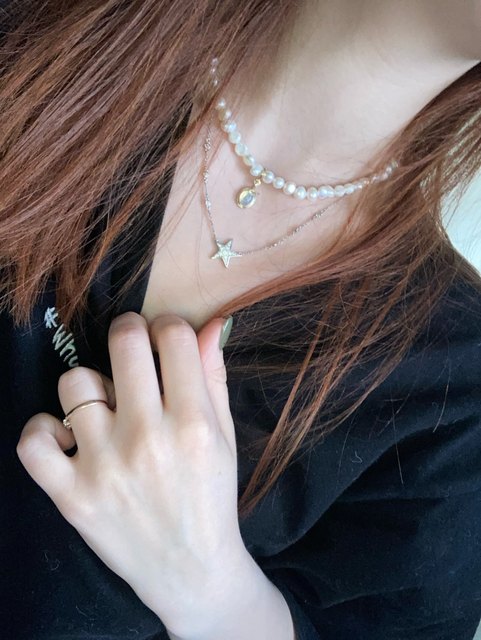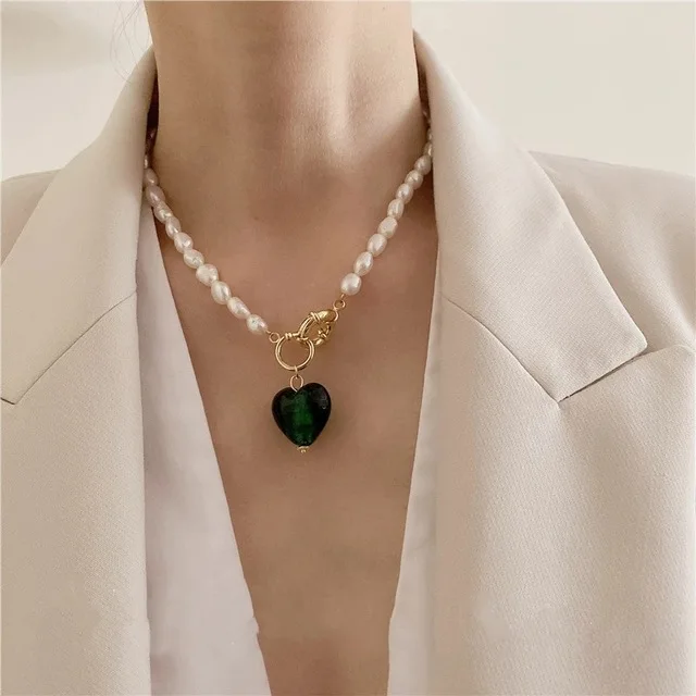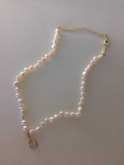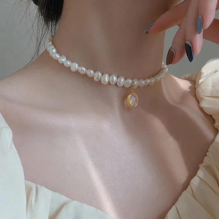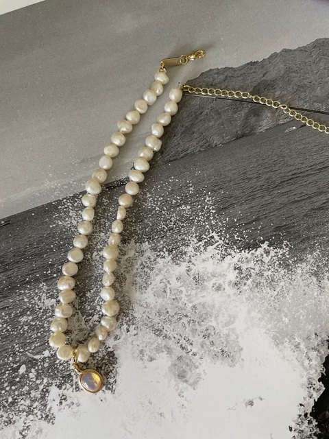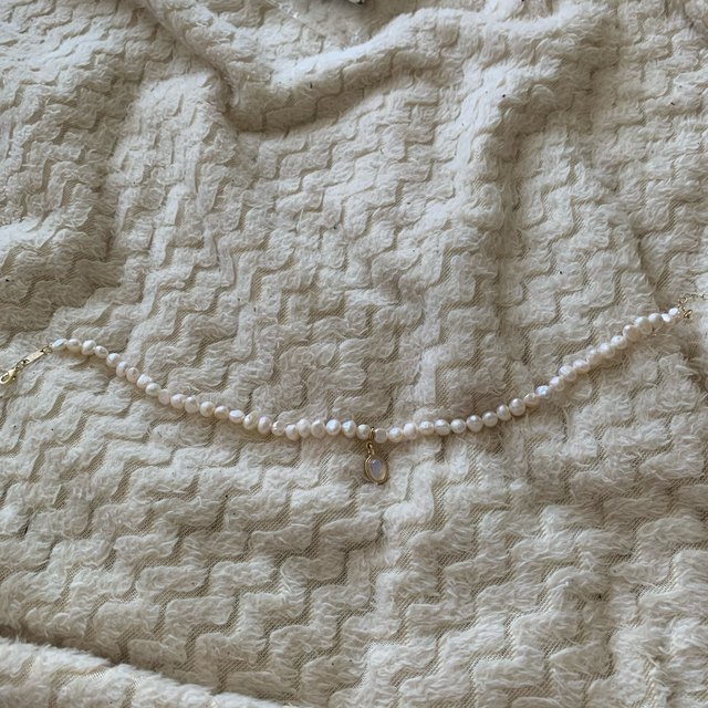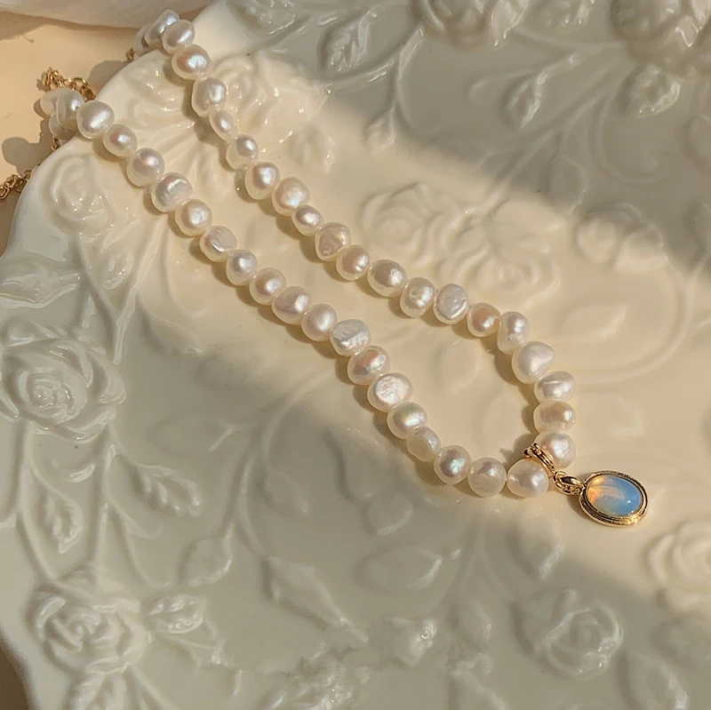 The necklace is beautiful. Pearls are crooked, but I still like it. The stone in the suspension is neat. Looks nice. The clasp is adjustable. It came in a week about to Moscow.