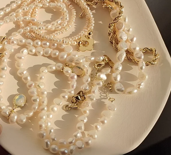Pearls are natural, poor quality, more than half of the curves, stone on the carabiner. Many in shape consist of halves. In general, it looks stylish, for one summer will go. To Moscow in 20 days.
