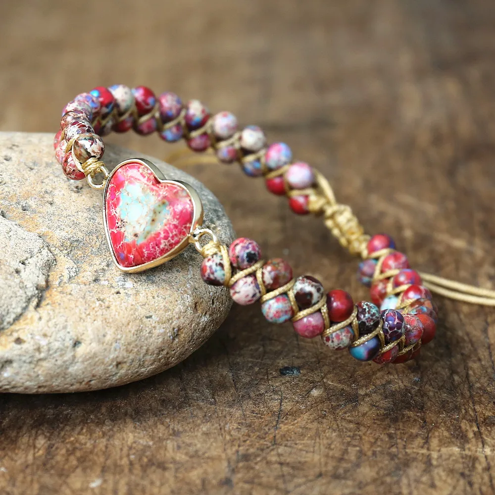Imperial Stone Heart Shape Charm Bracelets Women Bohemia Yoga String Braided Bracelet Lover Wrap Bracelet Femme Handmade Jewelry