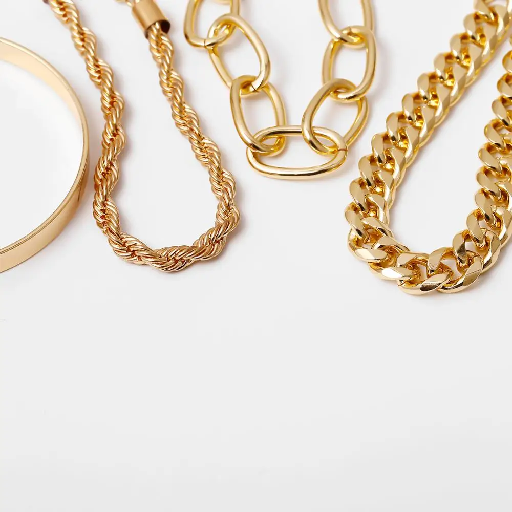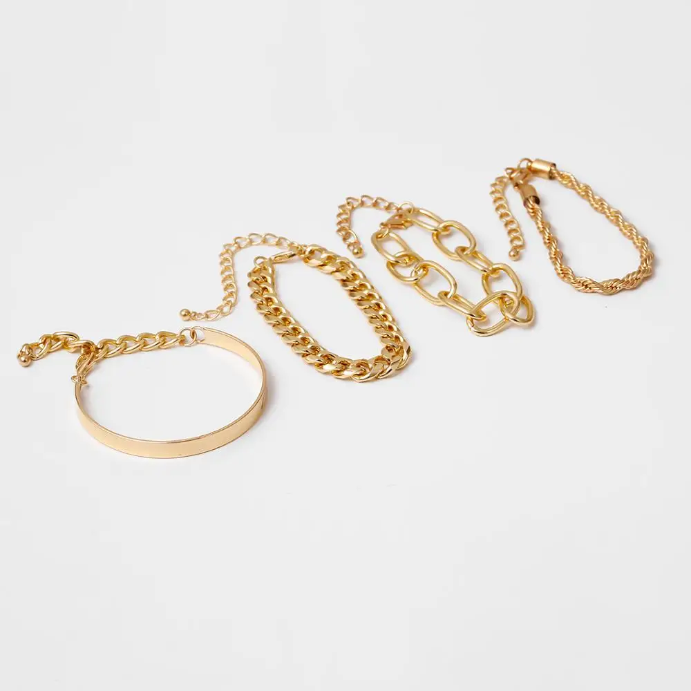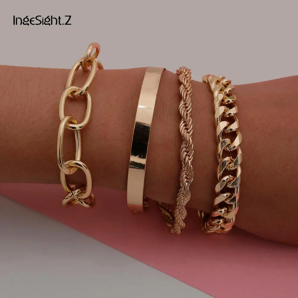 IngeSight.Z 4Pcs/Set Hip Hop Chunky Thick Miami Curb Cuban Bracelets Bangles Punk Metal Twisted Rope Chain Bracelet Jewelry Gift