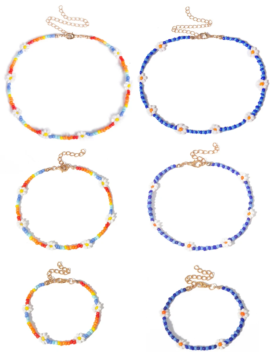 IngeSight.Z Bohemian Colorful Seed Bead Flower Choker Necklace Statement Short Collar Clavicle Chain Necklace for Women Jewelry