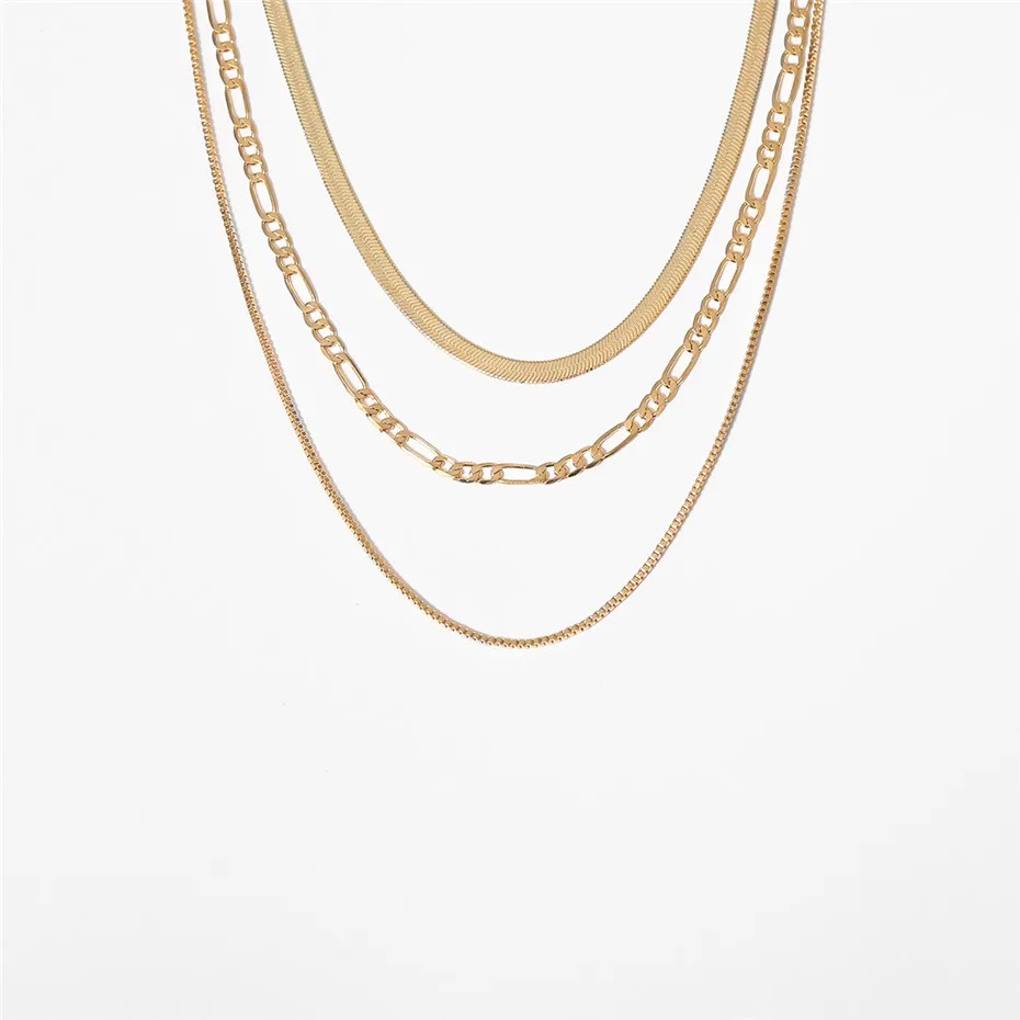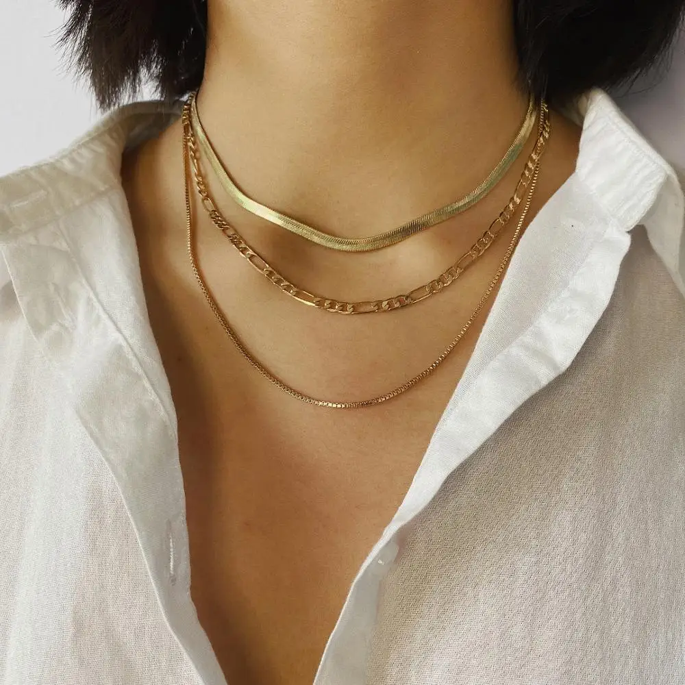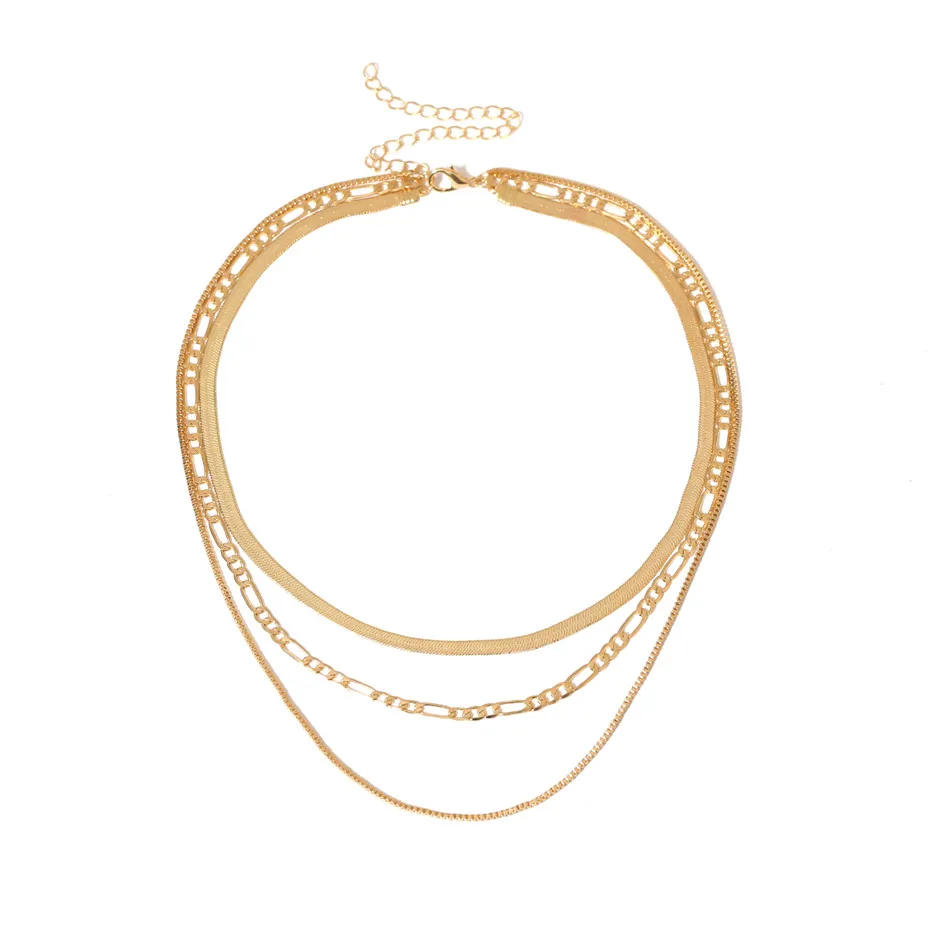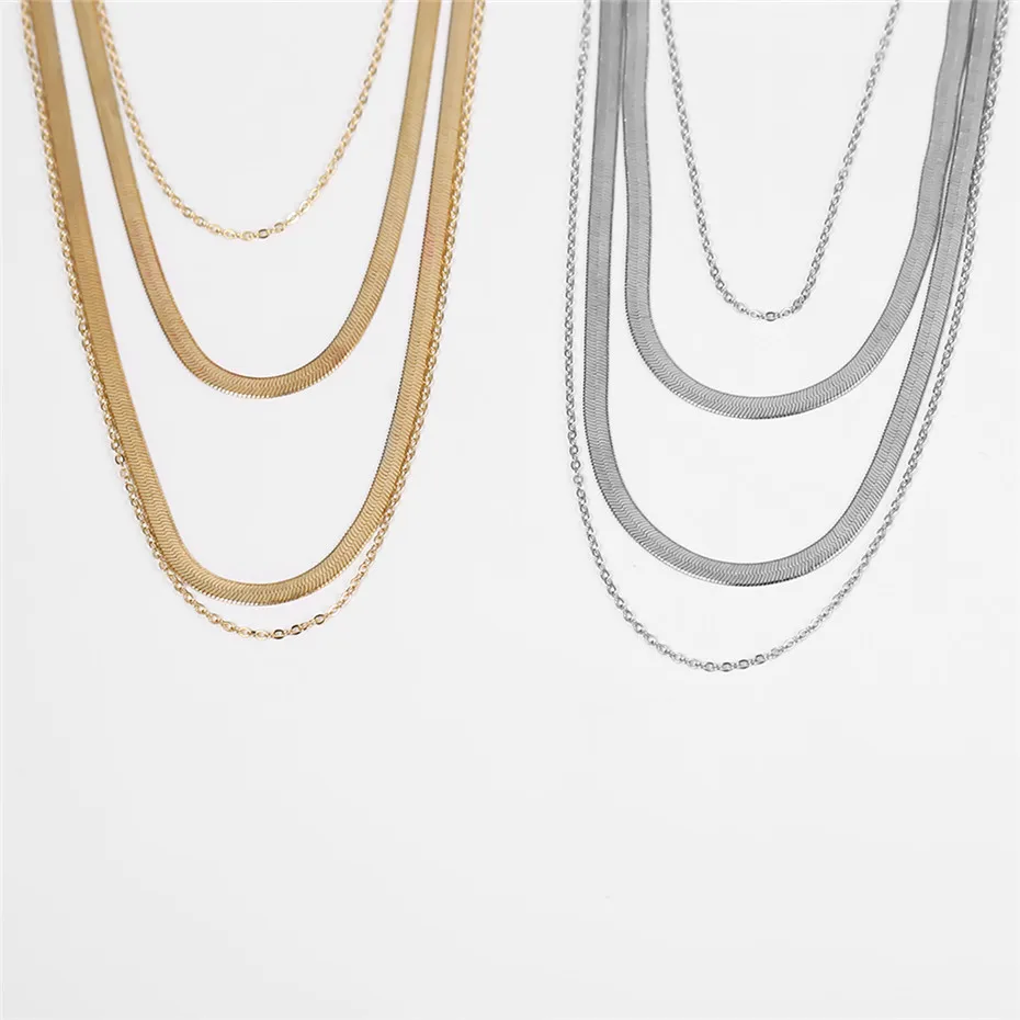 IngeSight.Z Punk Multi Layered Flat Blade Snake Link Chain Choker Necklace Simple Gold Color Collar Necklaces for Women Jewelry