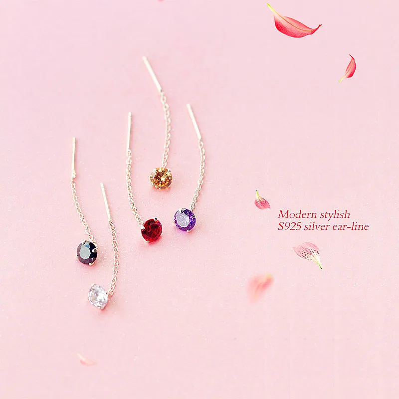 INZATT 925 Sterling Silver Five Colors Zircon Crystal Dangle Drop Earrings Short Tassel Chain For Women Wedding FINE Jewelry