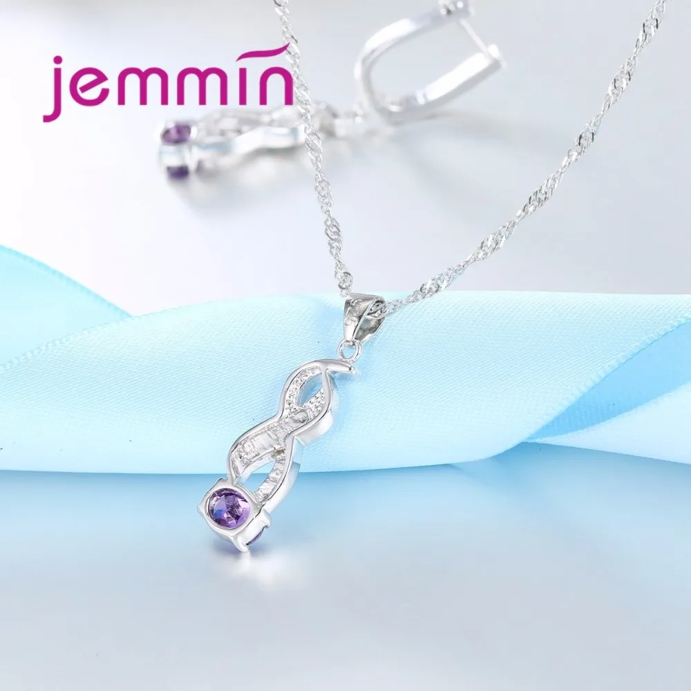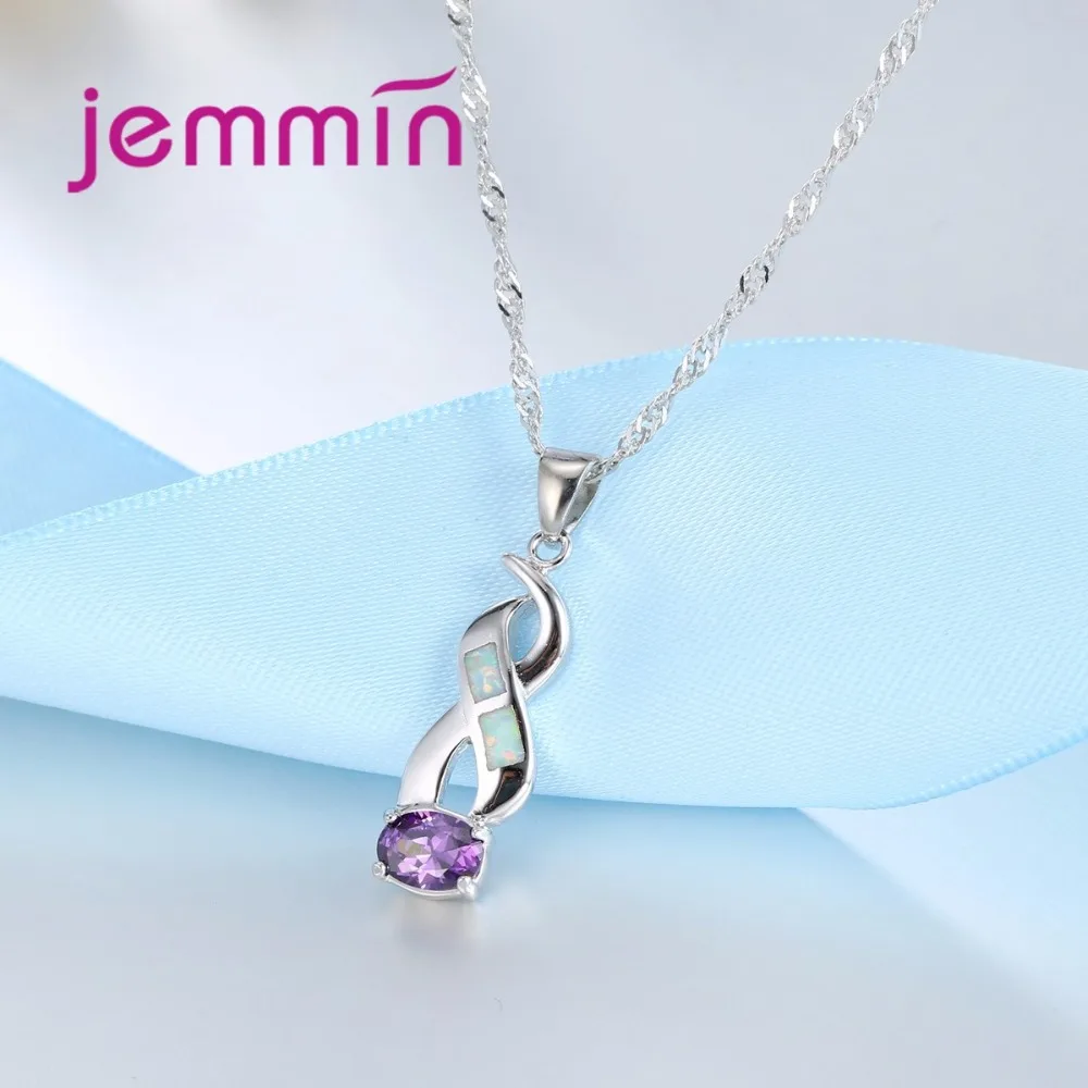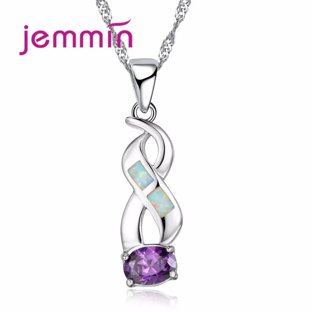 Jemmin New Arrival Cross Twist Pendant Rainbow Fire Opal Connect Big Round Purple Crystal 925 Sterling Silver Necklace