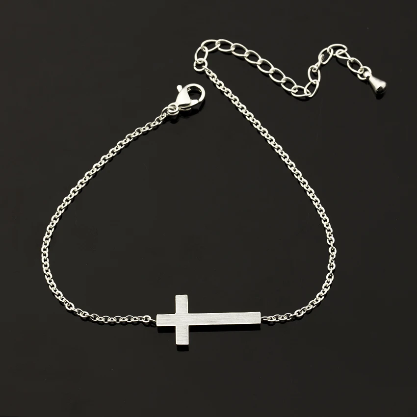 Jesus Christian Womens Mens Horizontal Sideways Cross Bracelets Silver Religious Trendy Stainless Steel Chain Bracelet Lucky