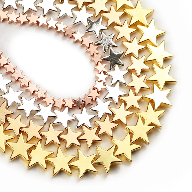 4/6/8/10mm Gold, Silver Star Shape Hematite Natural Stone Spacer loose Beads For Jewelry Making 15” Diy Bracelets Necklace Length: 15inches/strand 4mm:110pcs /strand; 6mm:80pcs /strand; 8mm:60pcs /strand; 10mm:50pcs /strand;.