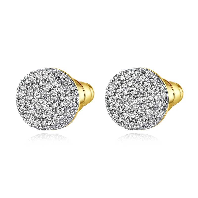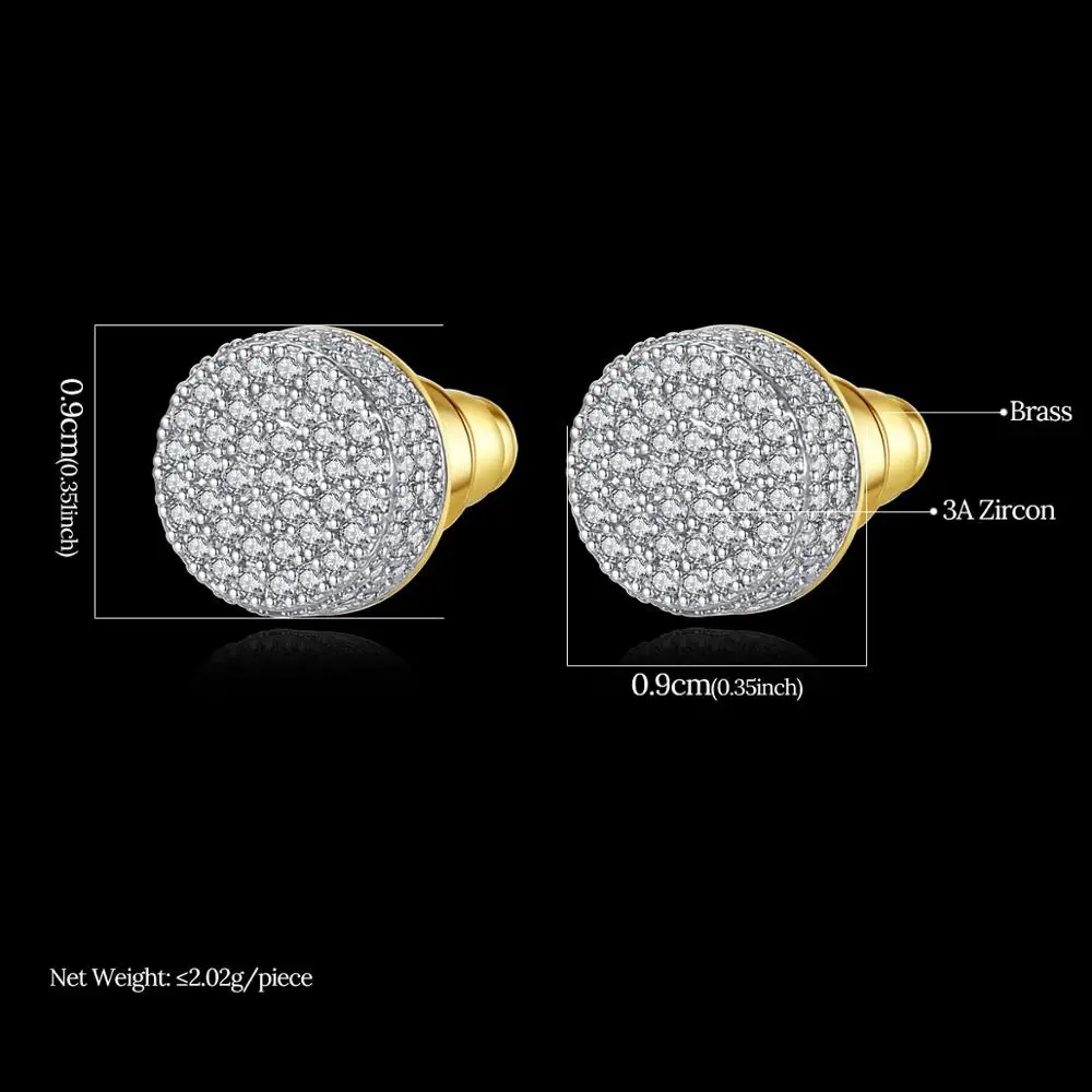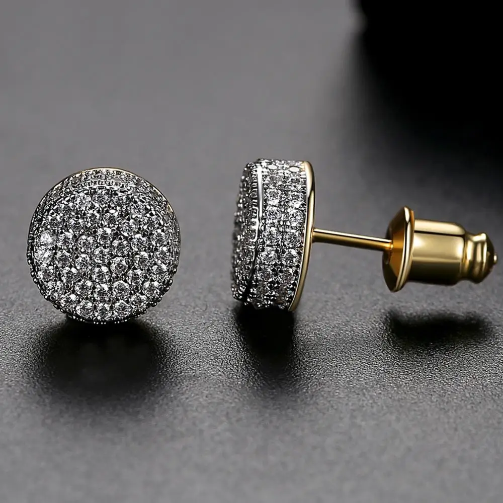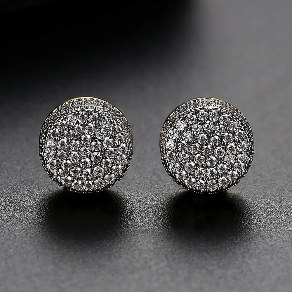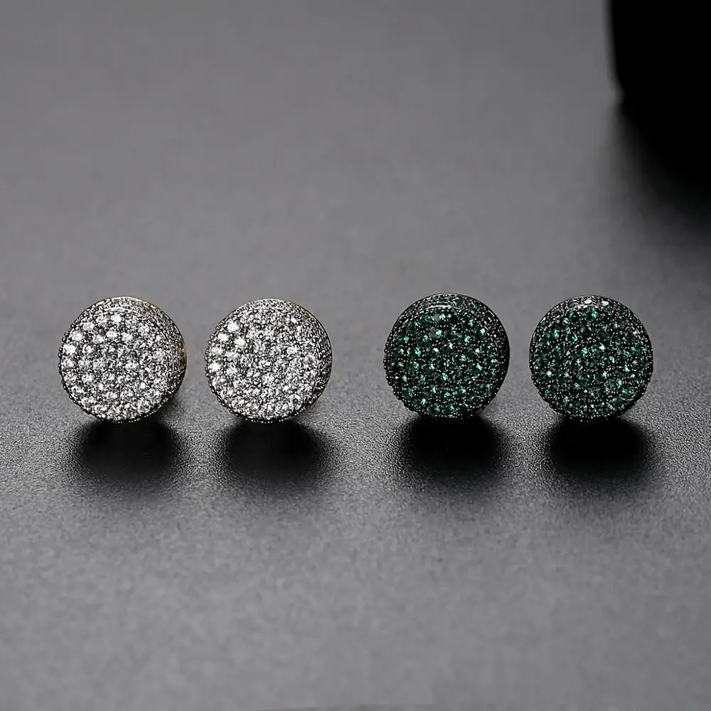 JINSE Hip Hop 9MM Round Cubic Zirconia Earrings For Men Ear Studs Crystal Green White Male Earings Fashion Jewelry Brincos