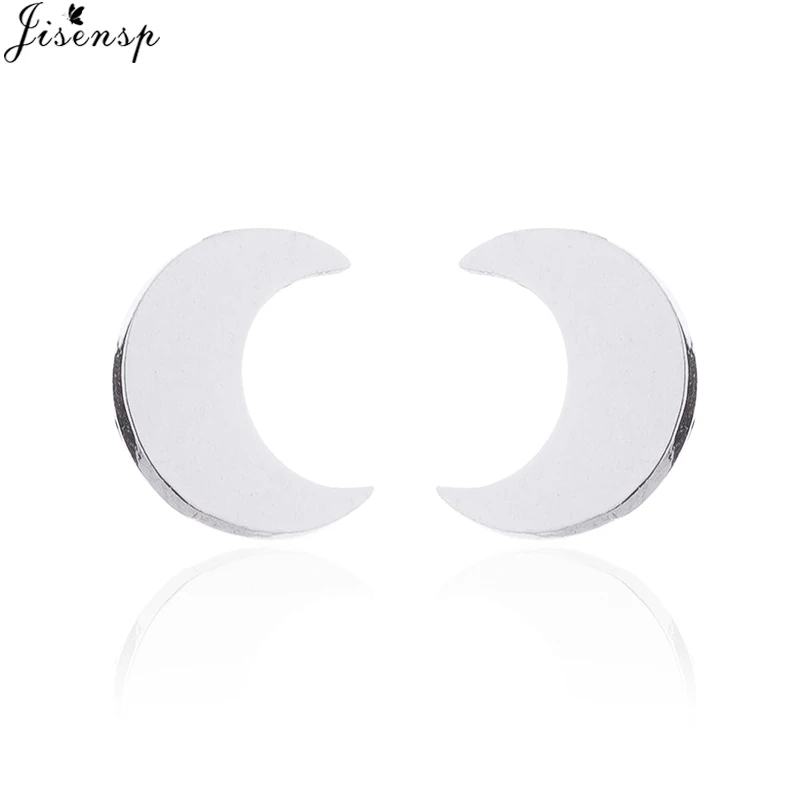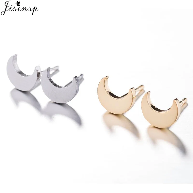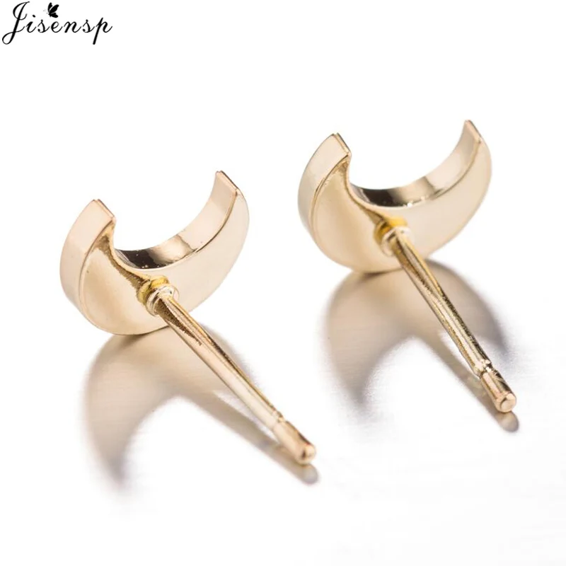 Jisensp Lovely Gold Stainless Steel Earrings Moon Stud Earrings for Women Korean Style Minimalist Earrings Jewelry Accessories