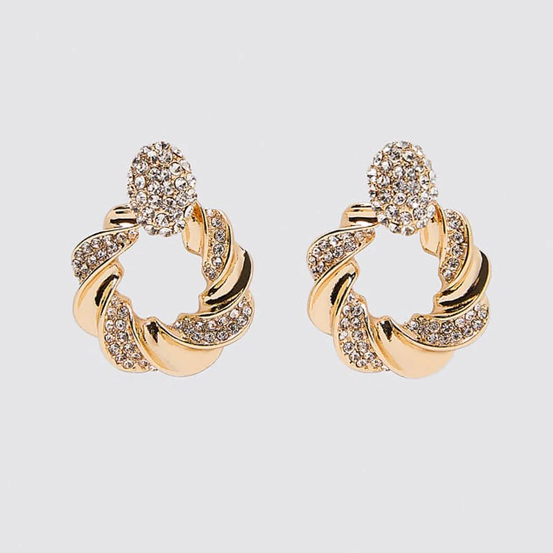 Hanreshe Crystal Stud Earrings Wedding Girl Earrings Copper Vintage Jewelry Minimalist Golden Earring Female Accessories Gift