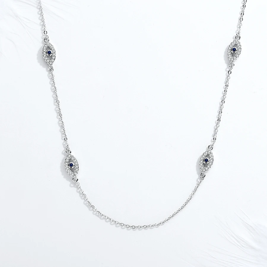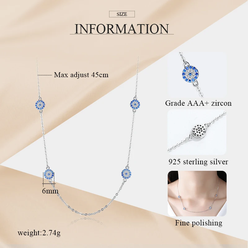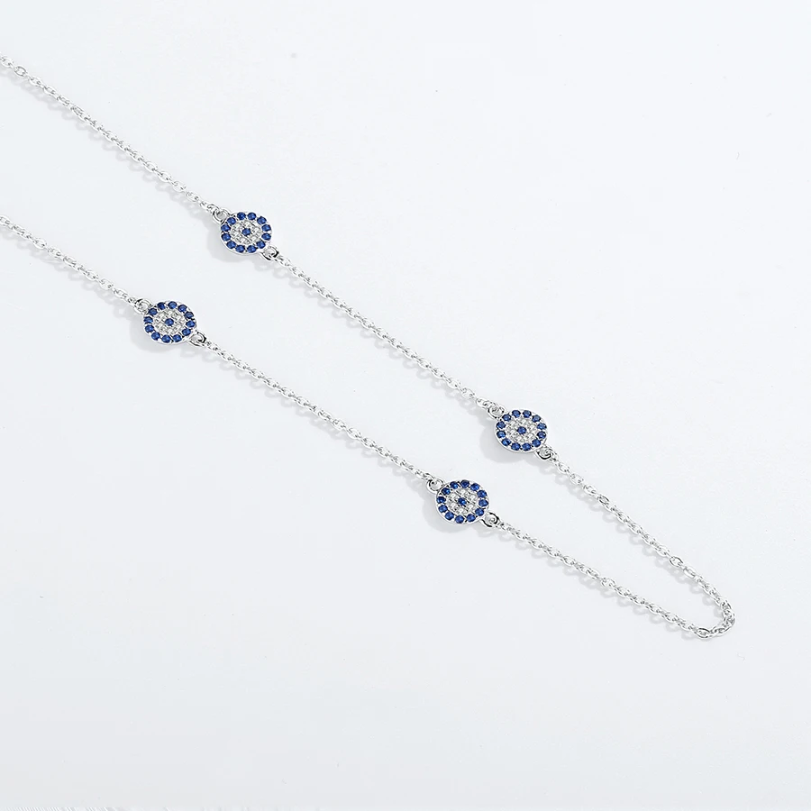 KALETINE 925 Sterling Silver Necklace Women Round Pendant Evil Eye Necklaces Blue Zircon Long Link Chain Turkey Jewelry 2019
