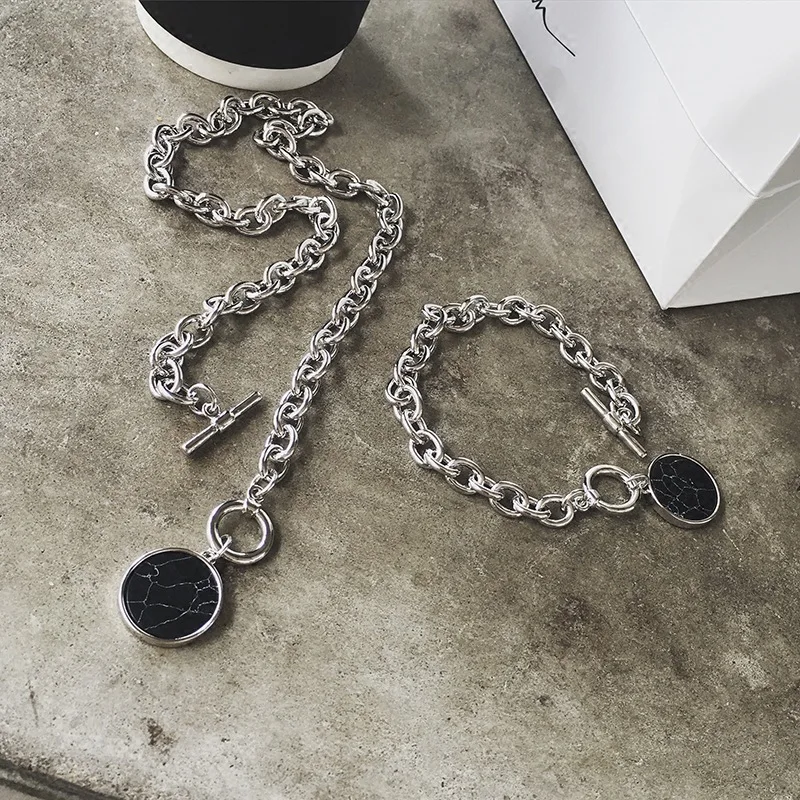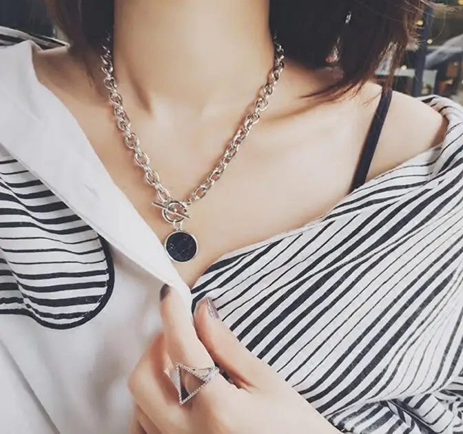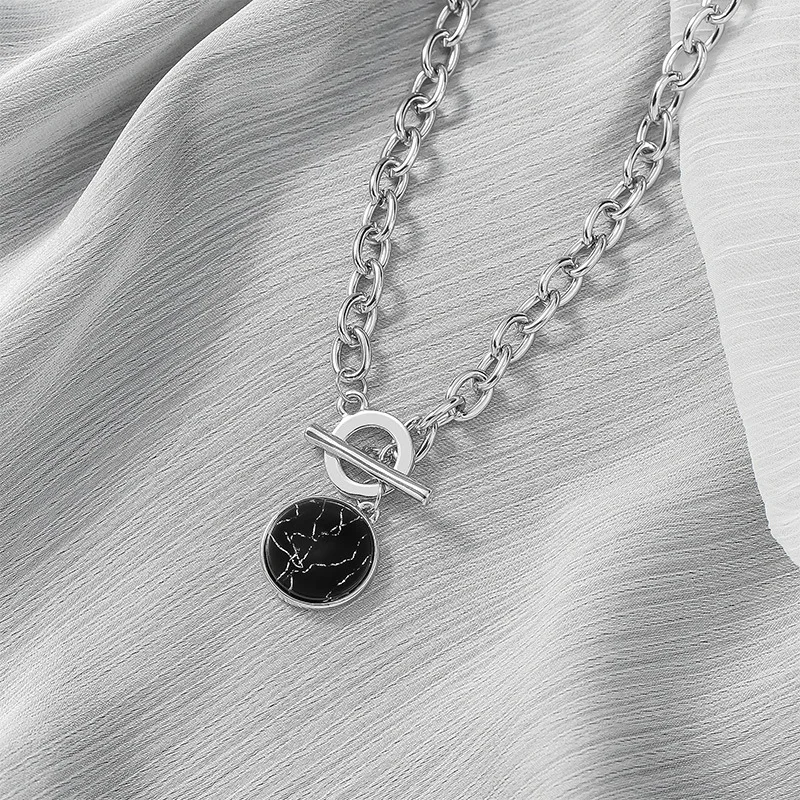 KMVEXO Minimalist Casual Neck Chain Necklaces for Women Round Marble Pendants Hiphop Female Fashion Jewelry Necklace Naszyjnik