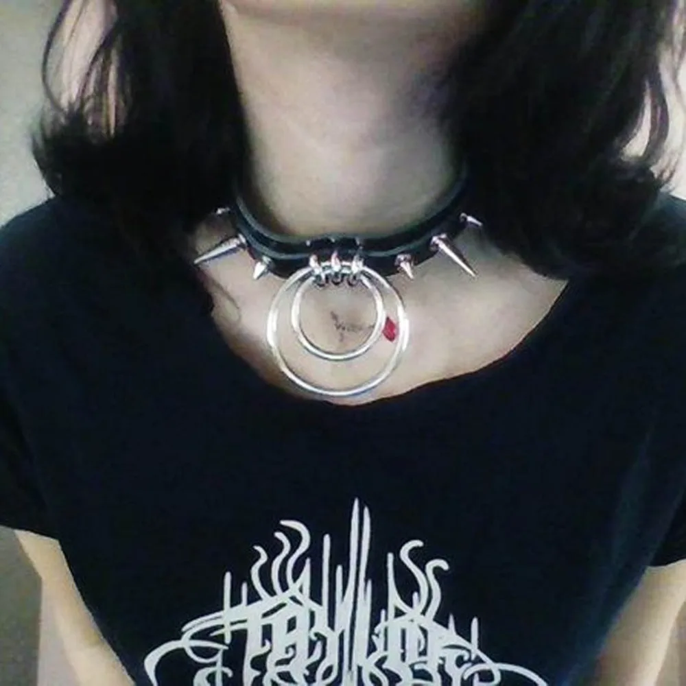 KMVEXO Punk Spike Metal Collar Girls Leather Harness Choker Necklace for Women Party Club Chockers Gothic Jewelry Harajuku 2019