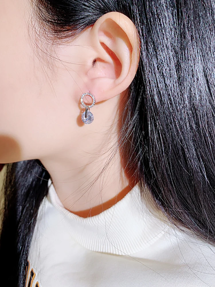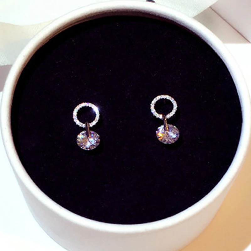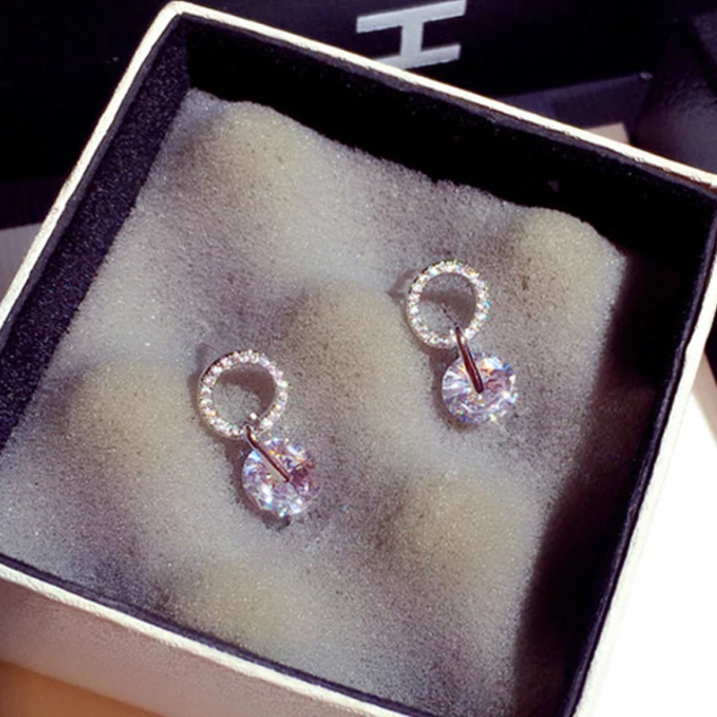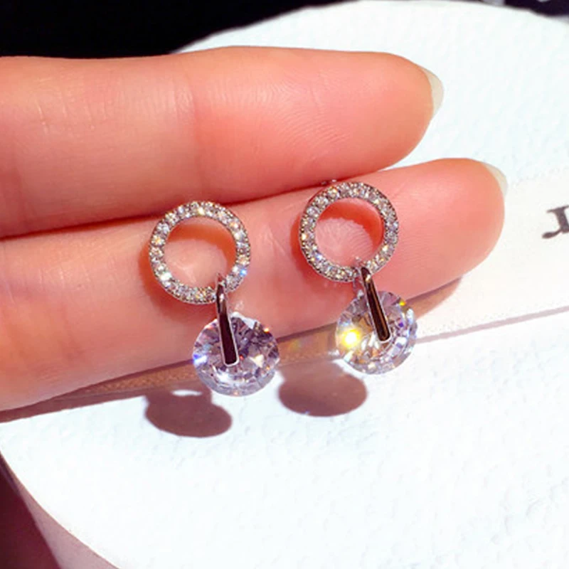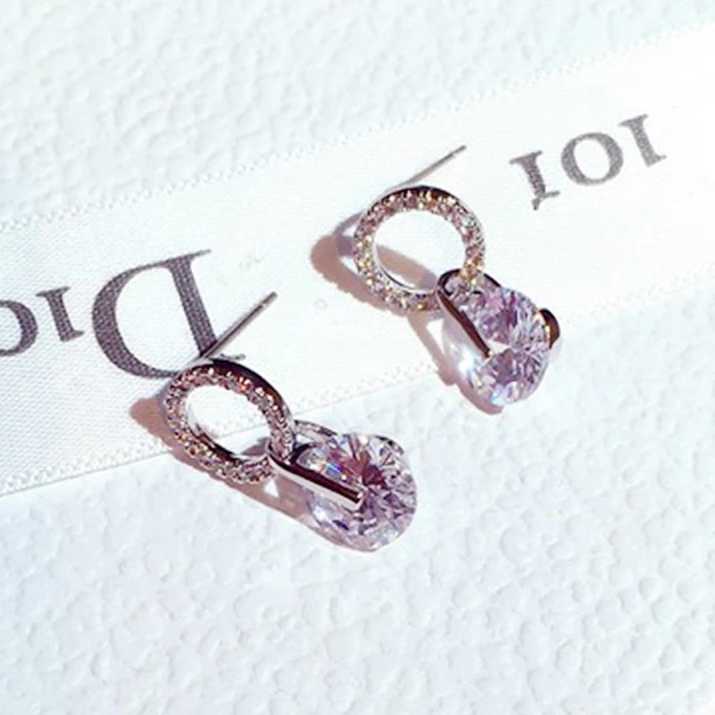 Korean Fashion 925 Silver Needle Bling Zirconia Circle Earring High Quality AAA CZ Transparent Crystal Stud Earring Pendant