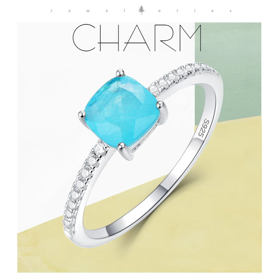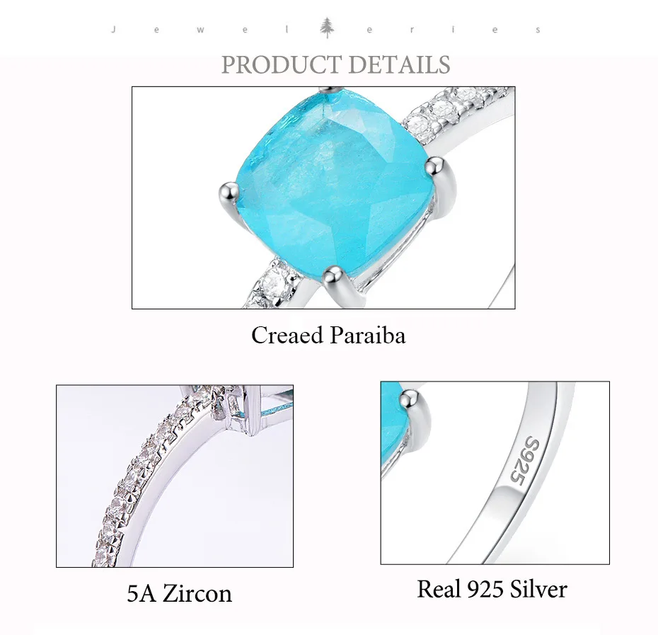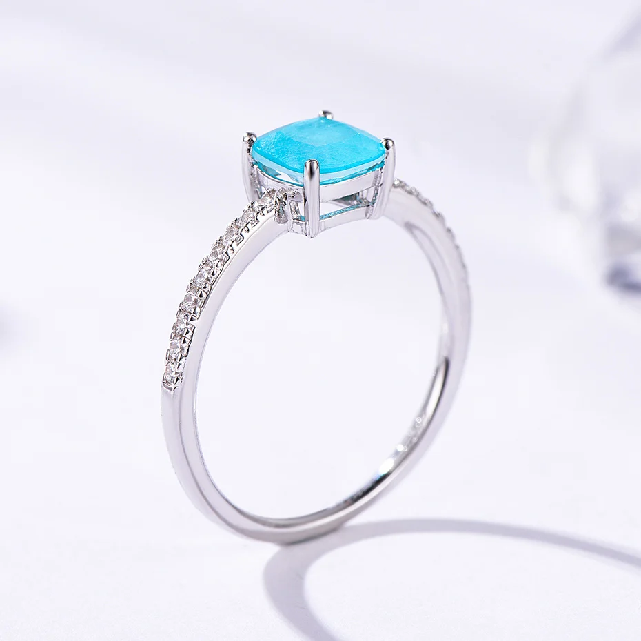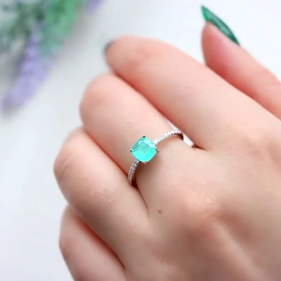 Item: Silver Ring For Women Metal: 925 Solid Sterling Silver Plated: Rhodium Plating Gemstone:Created Paraiba Tourmaline /Emerald/Tanzanite Stone Size:Cusion 6x6mm Ring weight:1.6g Stone Color: Blue Stone Cutting: Good Cut Free velvet jewelry bag