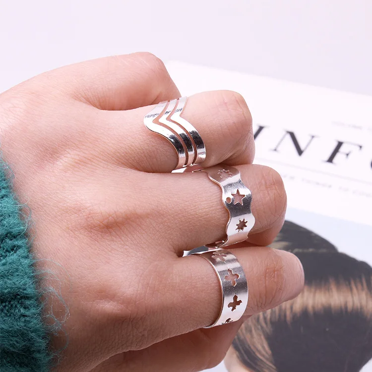 LATS Punk Metal Geometry Circular Punk Rings Set Opening Index Finger Accessories Buckle Joint Tail Ring for Women Jewelry Gifts