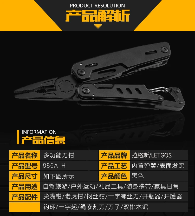 LETGOS Multitool-11 in 1 Multitool Pliers with Carabiner and Sheath-EDC Multi Tool Knives, Camping Tools Pocket Knife Screwdrive
