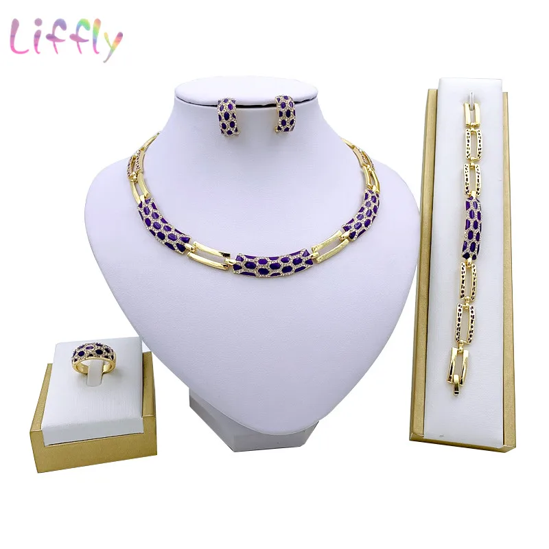 Liffly Luxury Bridal Women Dubai Gold Jewelry Sets Nigerian Wedding India Jewelry Set Costume Fashion Necklace Design