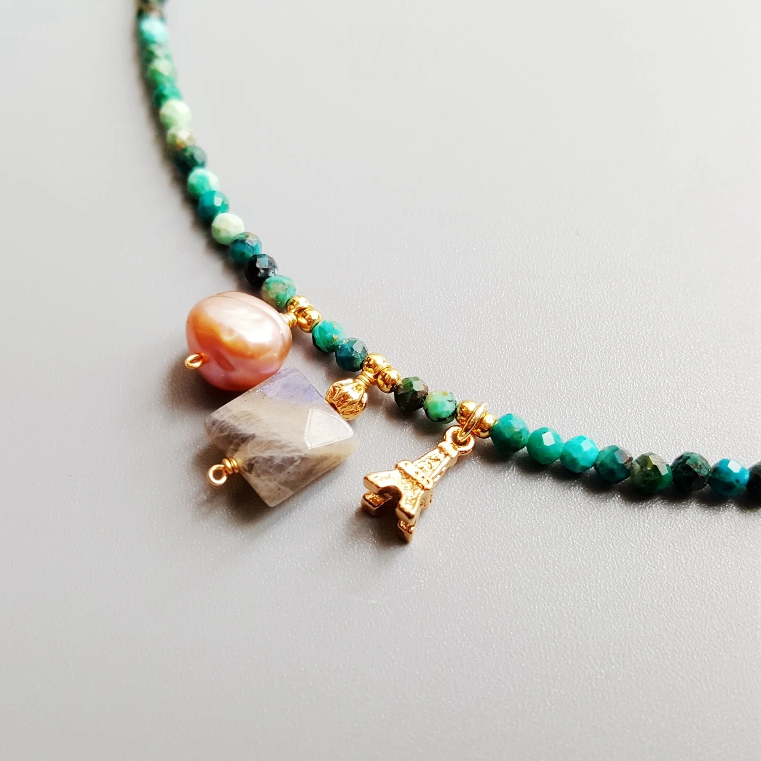 Name: | Chrysocolla Pearl Labradorite Choker Necklace | |