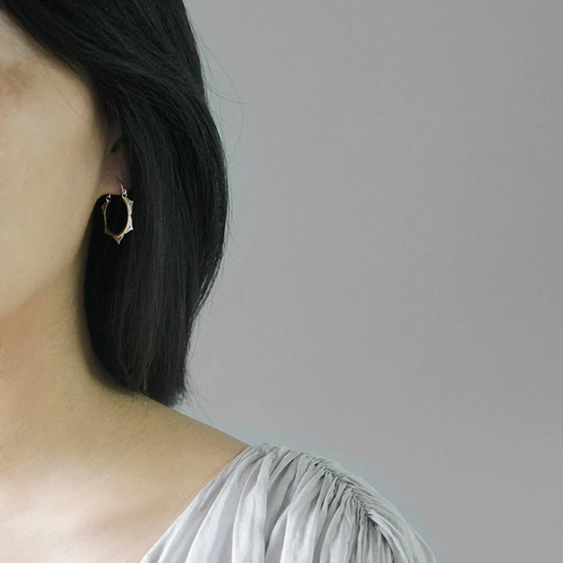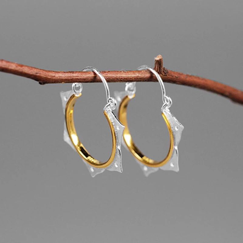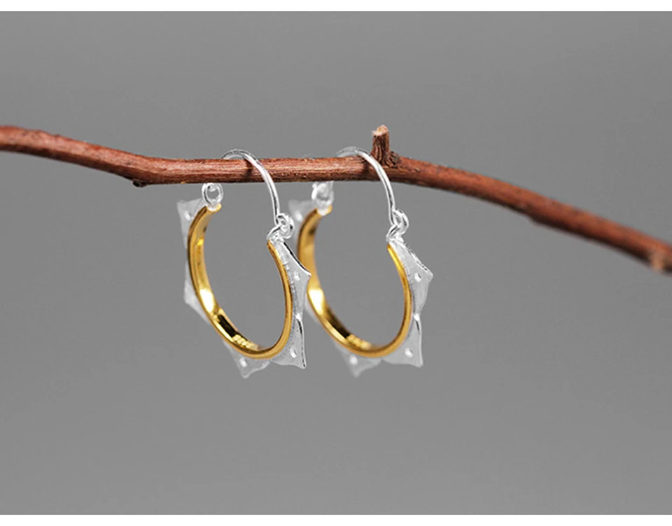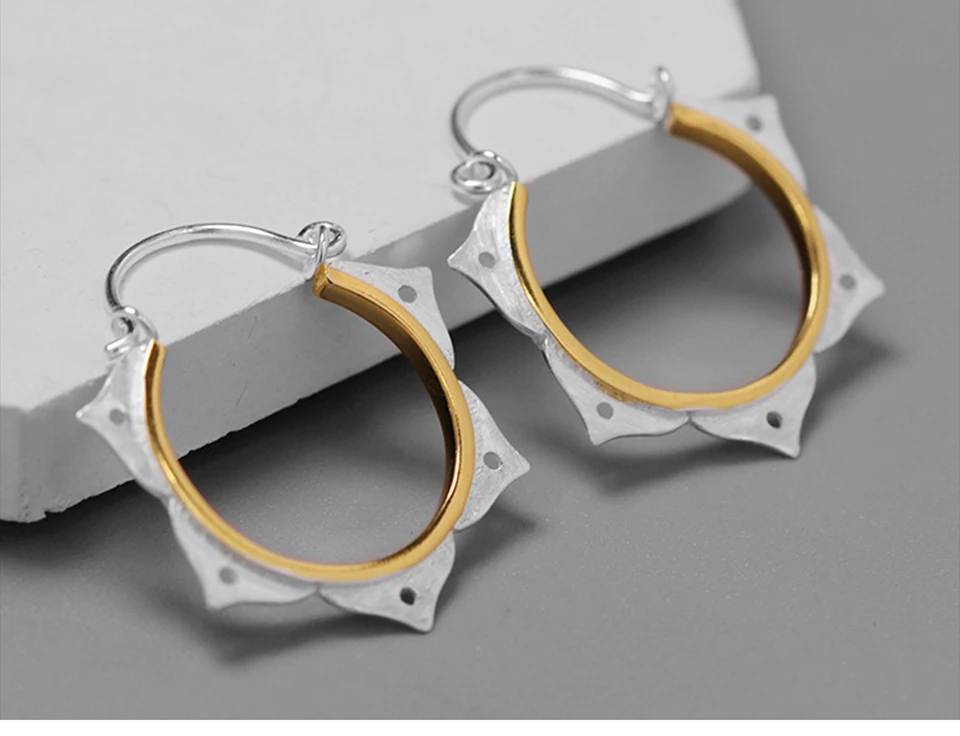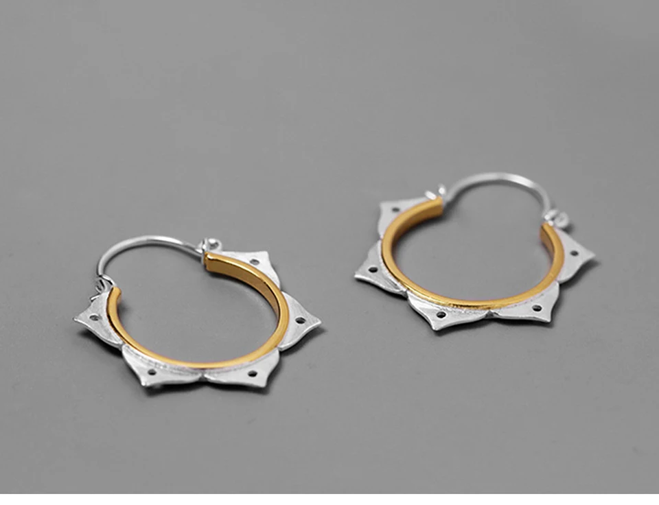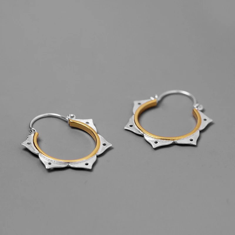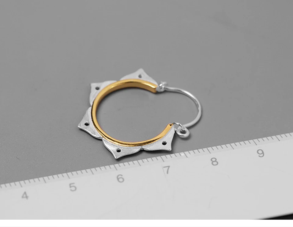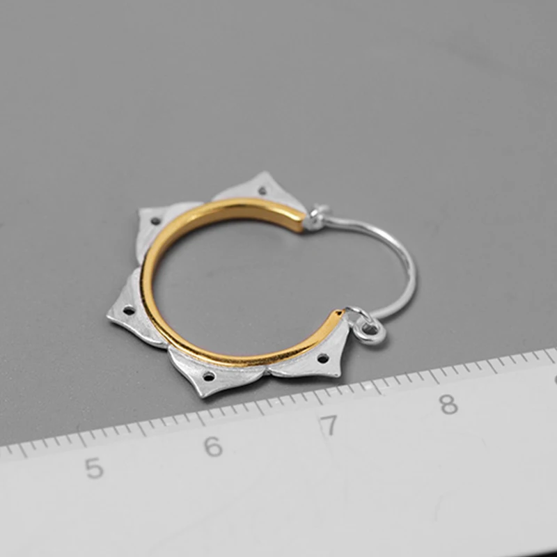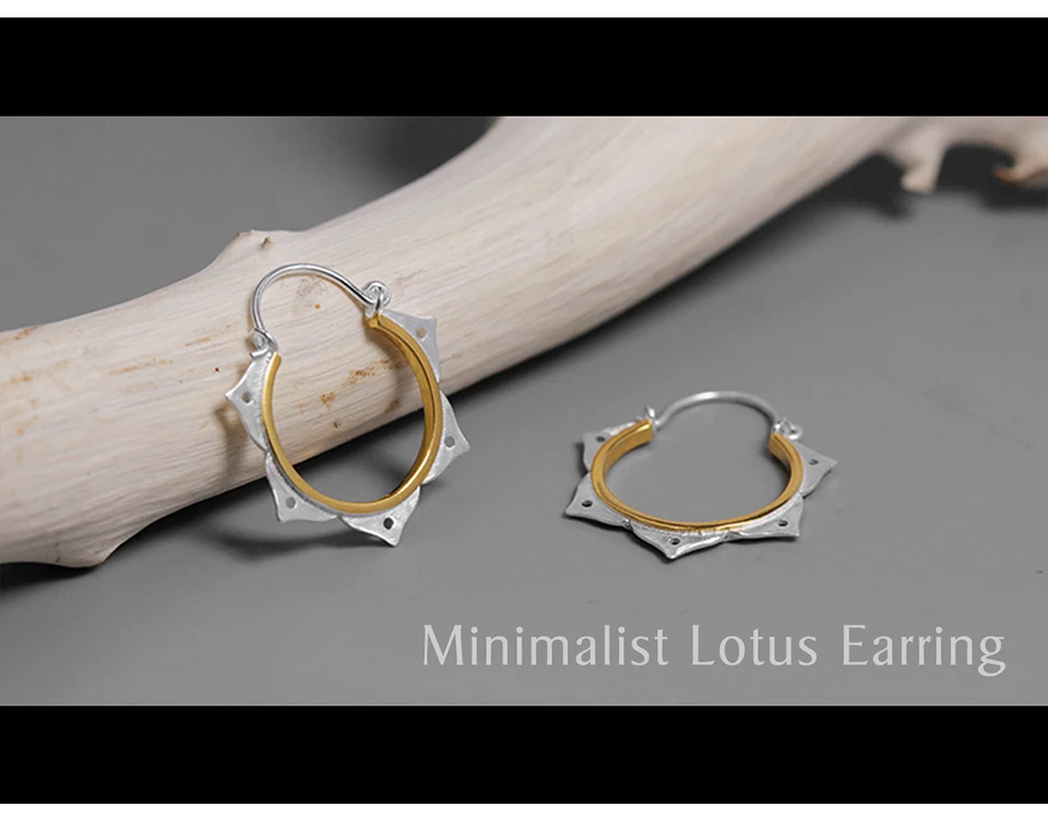 Lotus Fun Real 925 Sterling Silver Natural Creative Handmade Fine Jewelry Minimalist Lotus Flower Hoop Earrings for Women