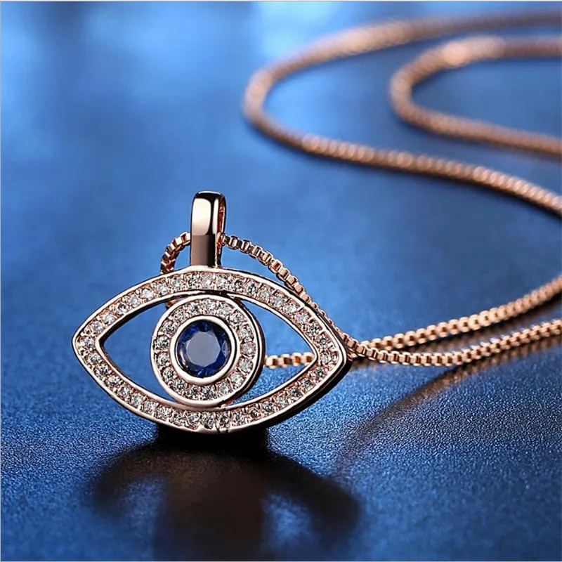 LUKENI Charm Crystal Eye Rose Gold Female Pendants Necklace Jewelry Girl Fashion 925 Sterling Silver Choker Necklace Accessories
