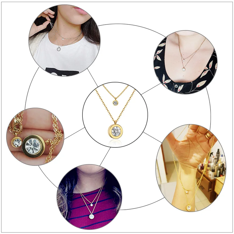 LUXUKISSKIDS Hot 316L Stainless Steel Gold/Steel Choker Link Chain Necklaces Women/Men Jewelry Zircon Pendants Necklace