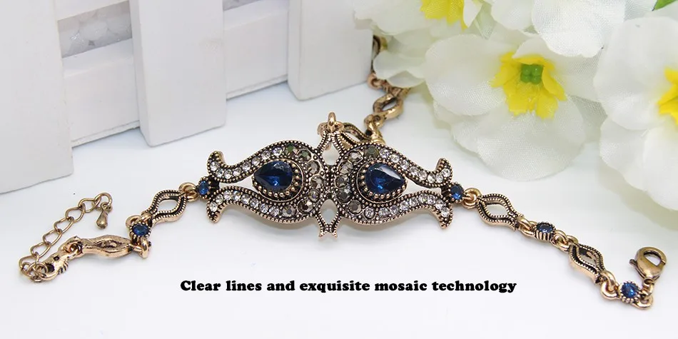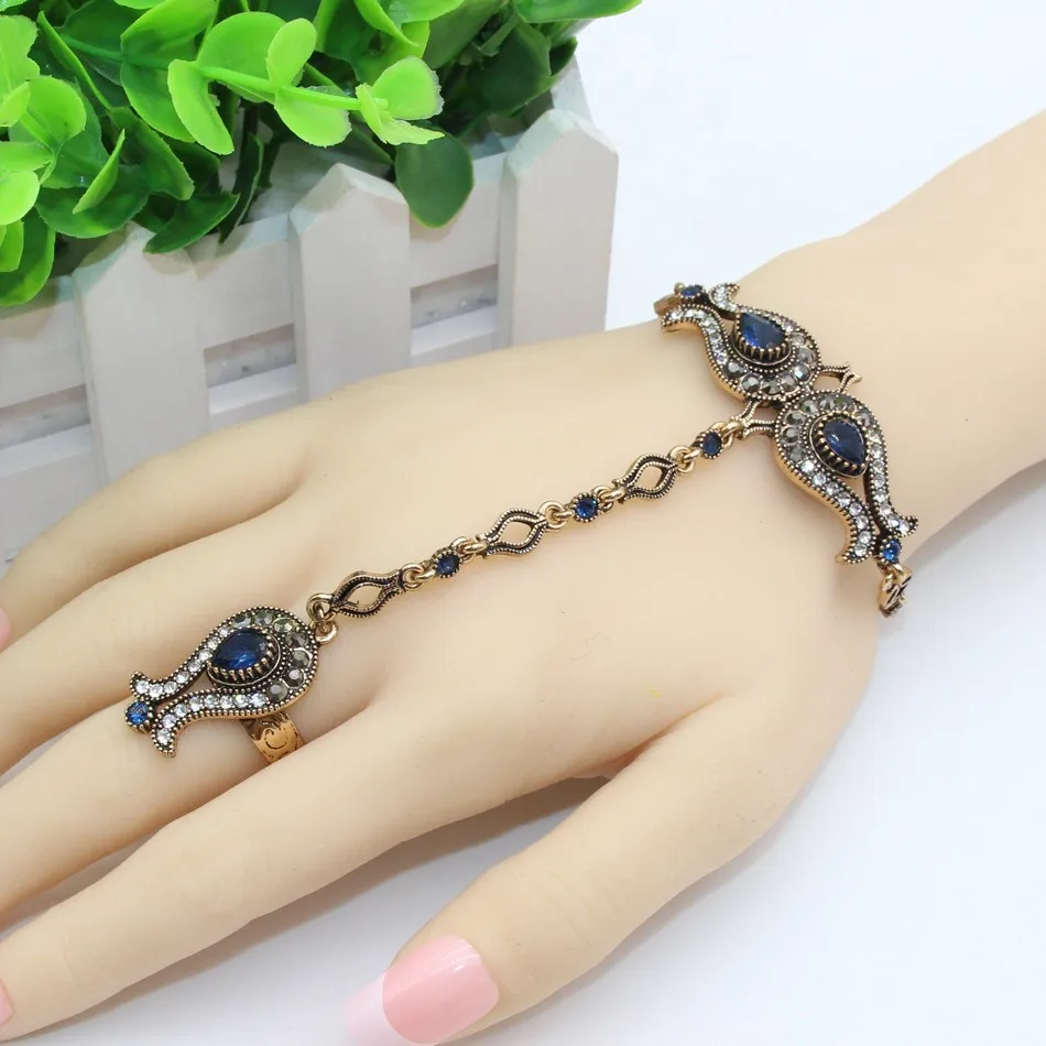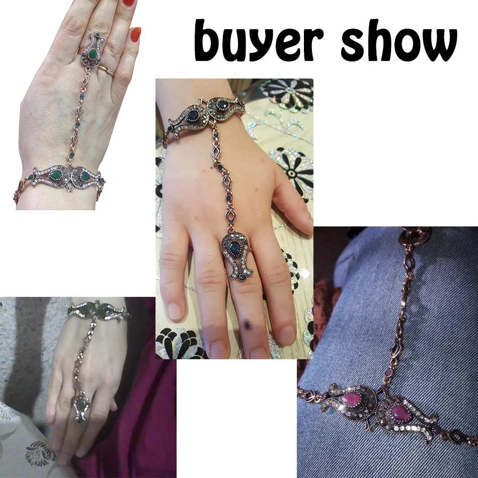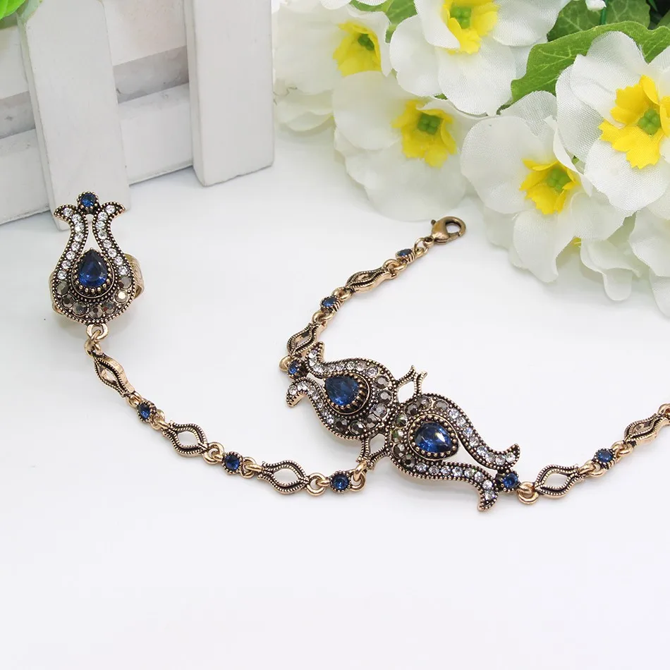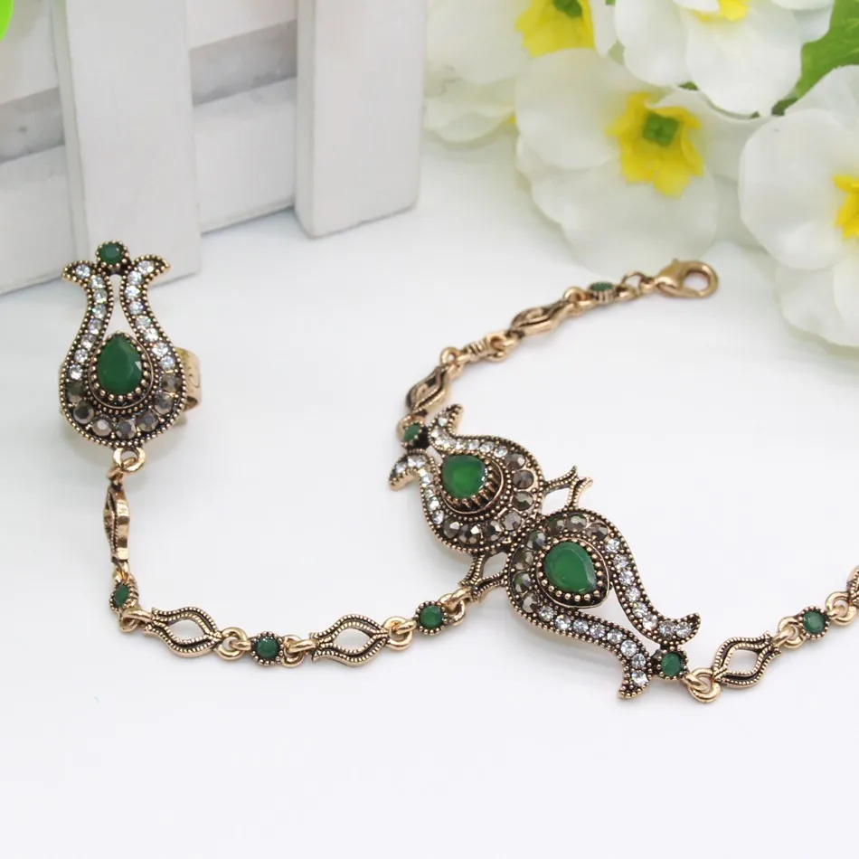 Luxuries Turkish Women Tulips Flower Bracelet Ring Set Resin Jewelry Antique Gold Color India Dance Wedding Secret bijouterie