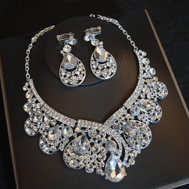 KMVEXO Baroque Crystal Water Drop Bridal Jewelry Sets Rhinestone Tiaras Crown Necklace Earrings Bride Wedding Dubai Jewelry Set