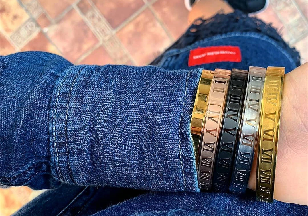 Luxury Roman Royal Classic Stainless Steel Bangle Cuff Bracelets Fashion Titanium Steel Type C Twisted Numeral Bangle For Men