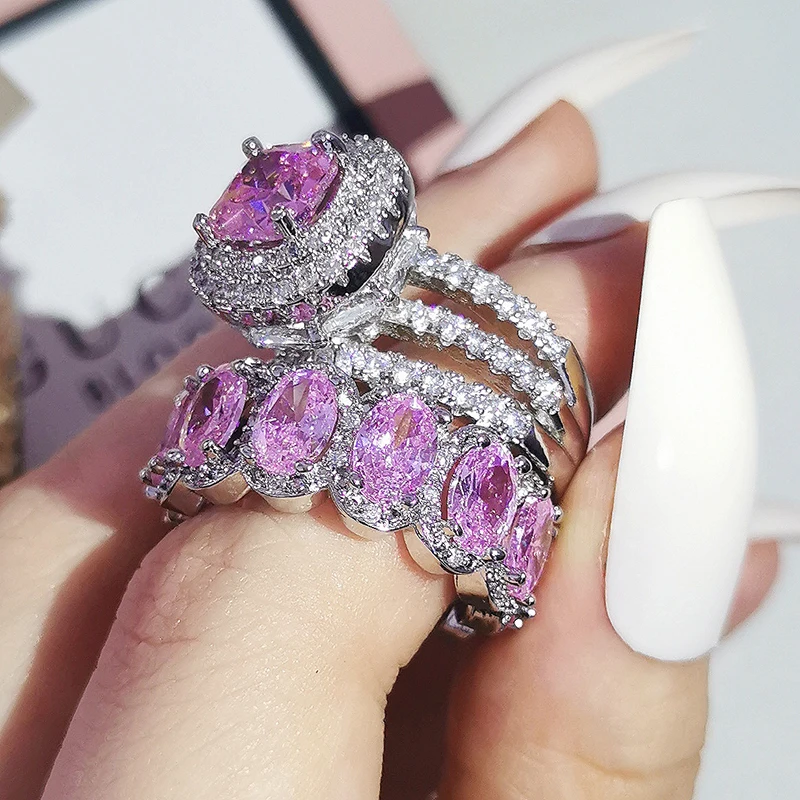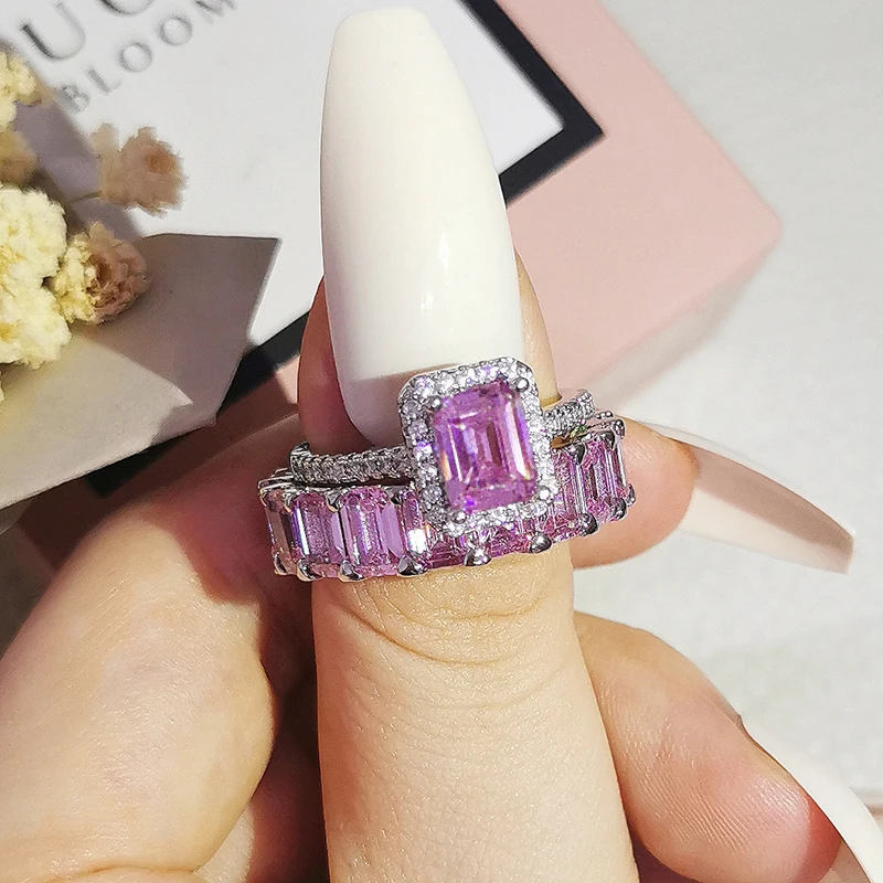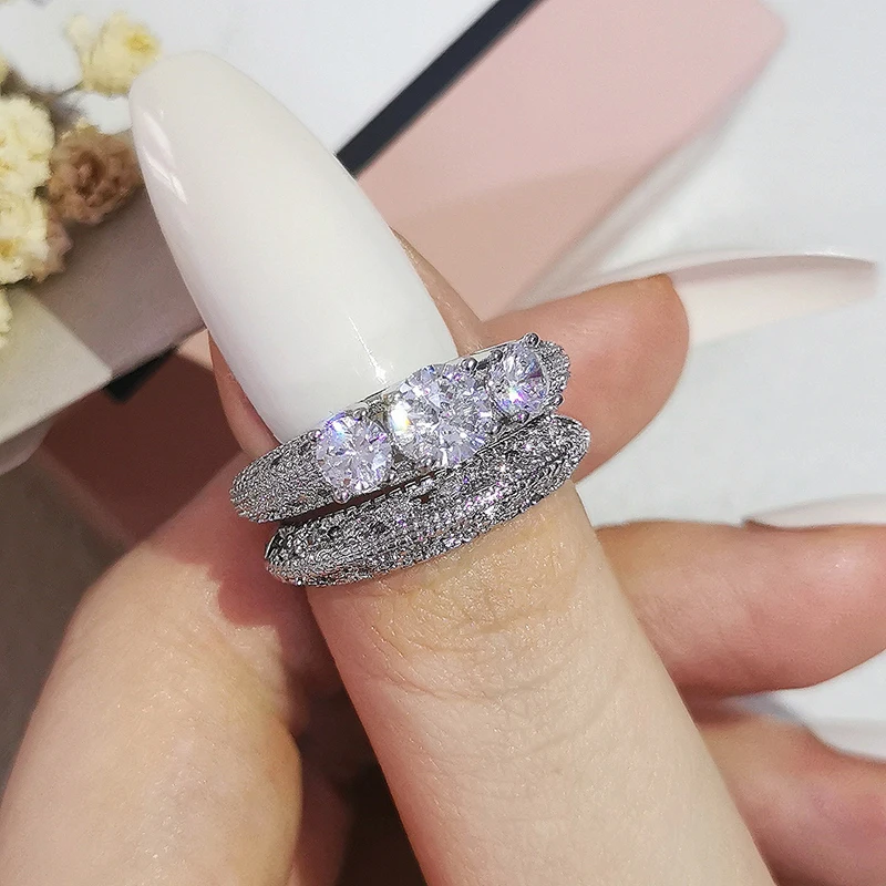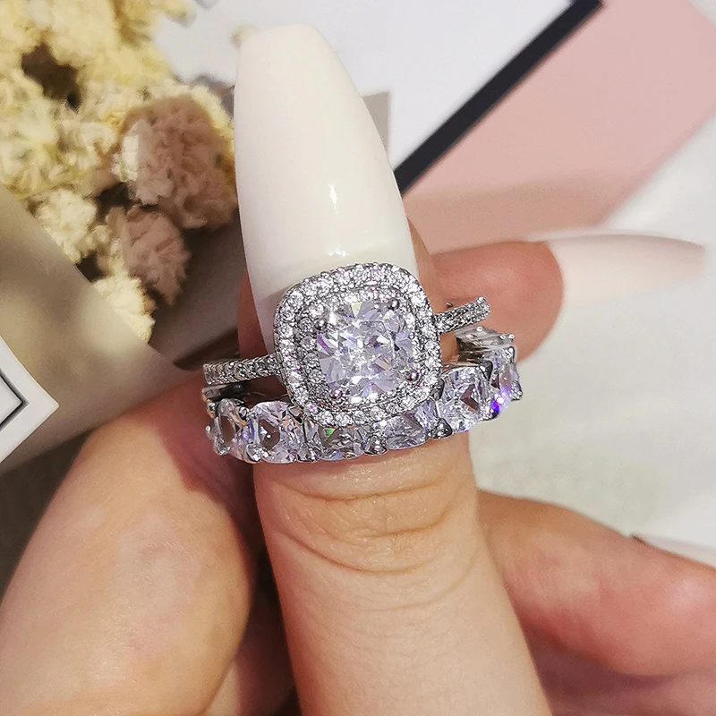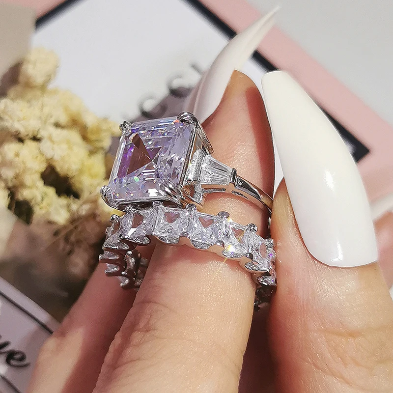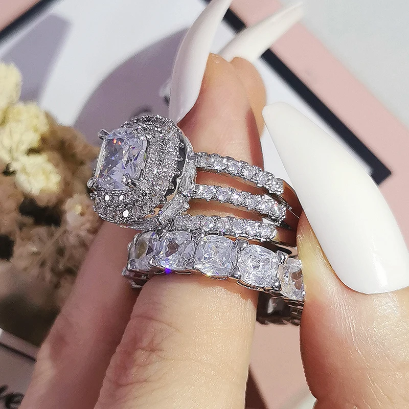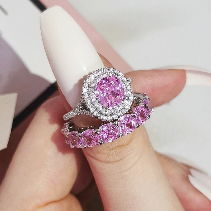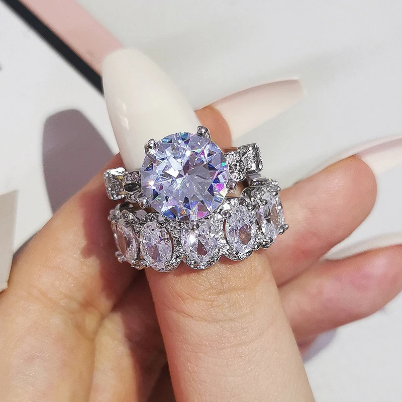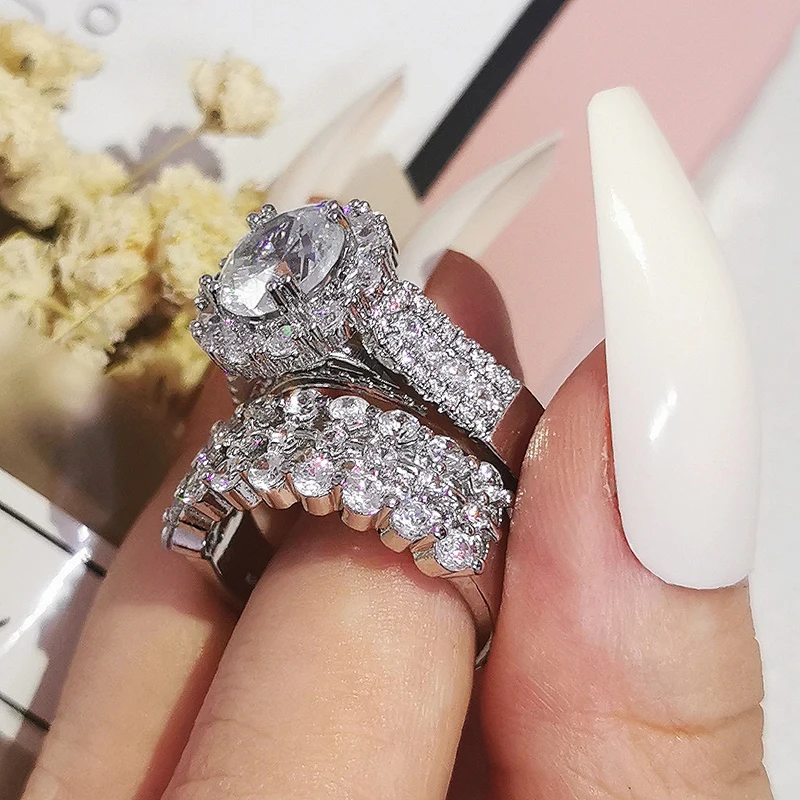 Luxury Real 925 Sterling Silver Oval Princess Cut Wedding Ring Set For Women Engagement Band Eternity Jewelry Zirconia R4975