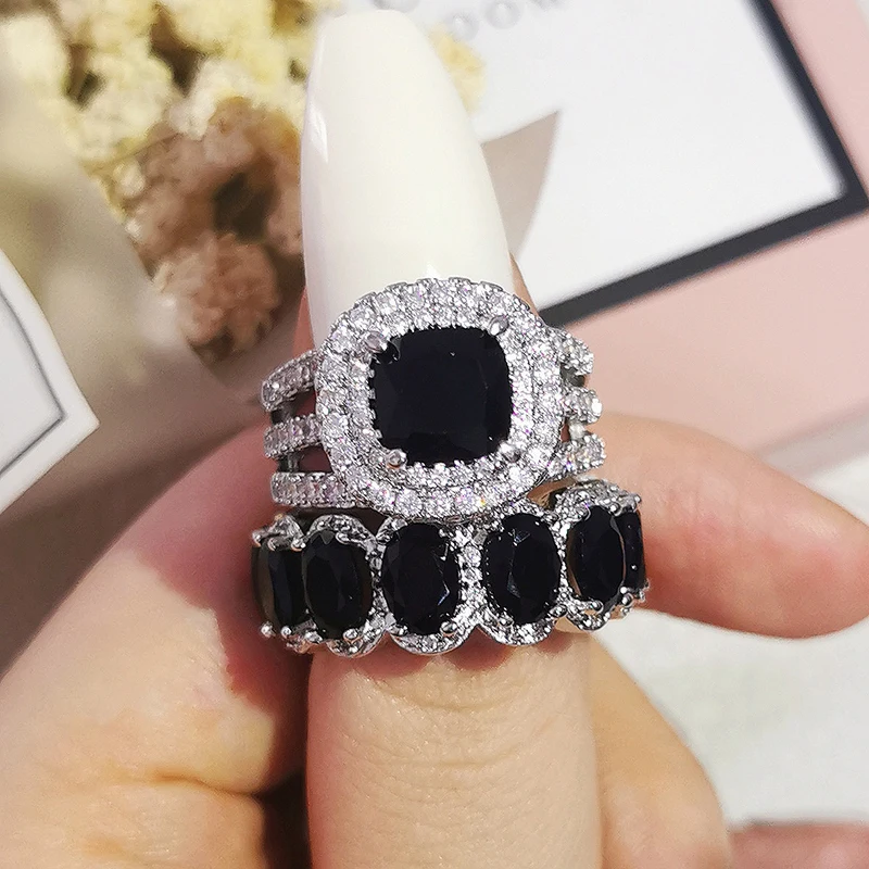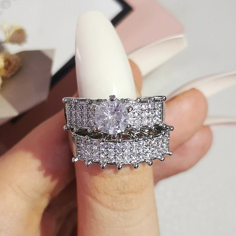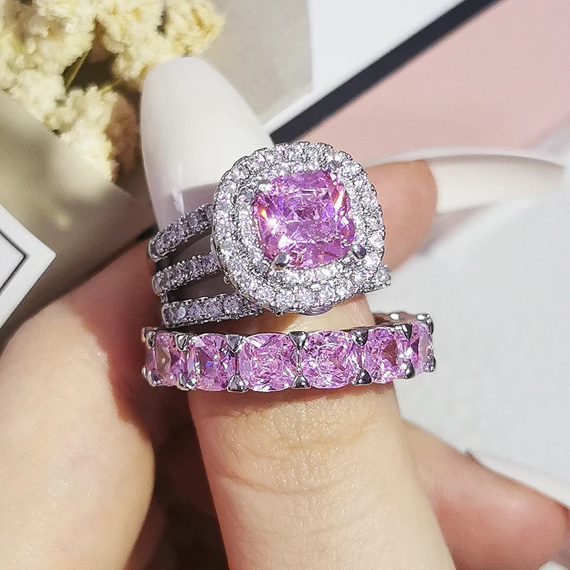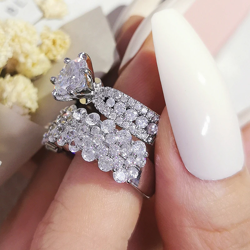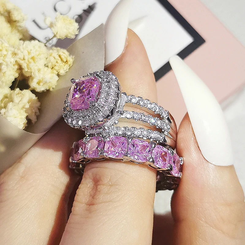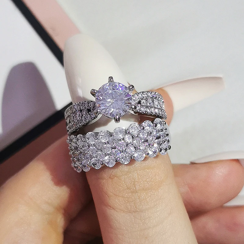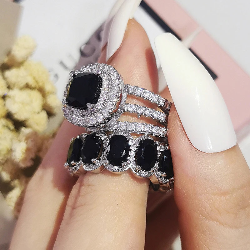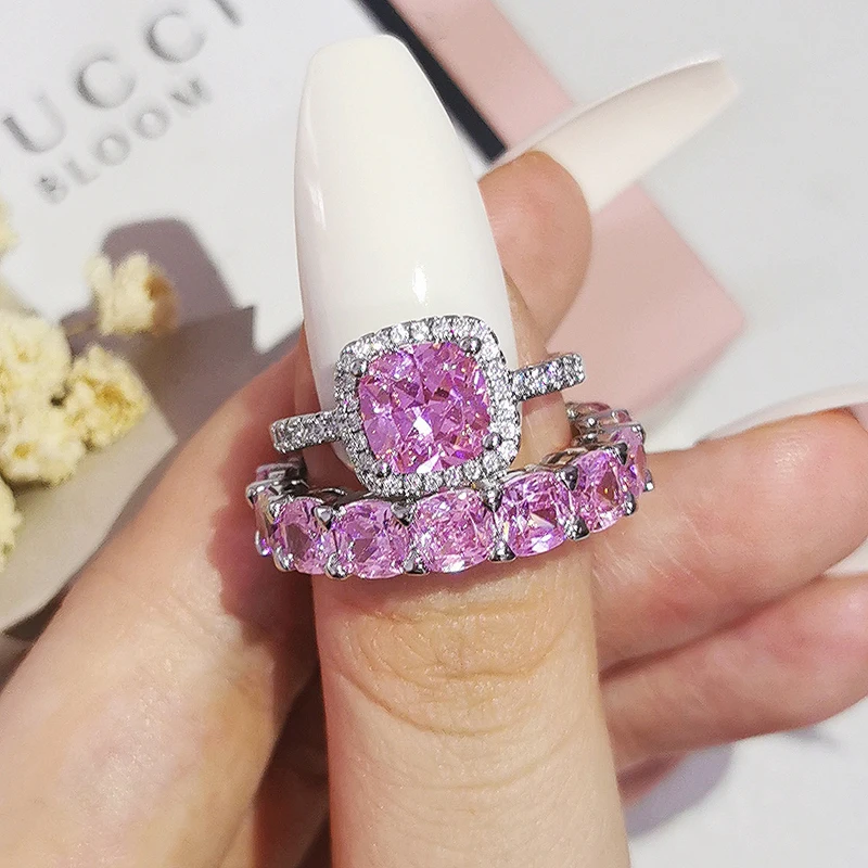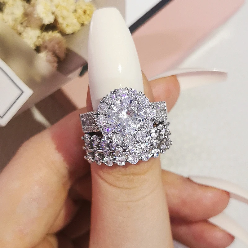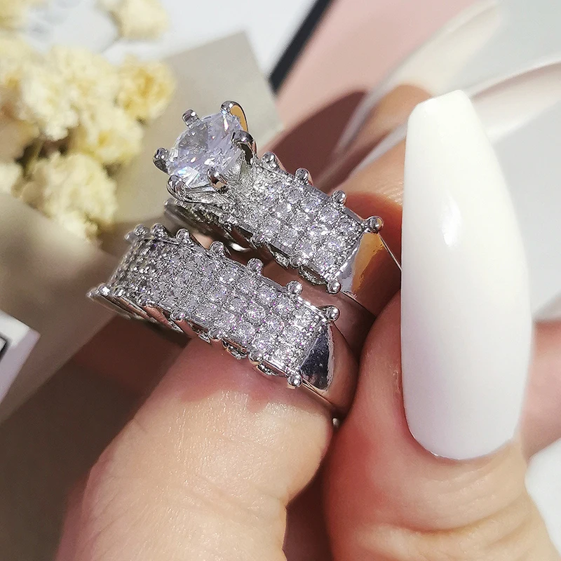 Luxury Real 925 Sterling Silver Oval Princess Cut Wedding Ring Set For Women Engagement Band Eternity Jewelry Zirconia R4975