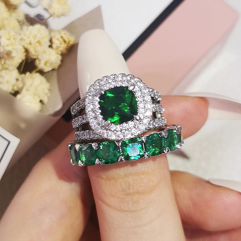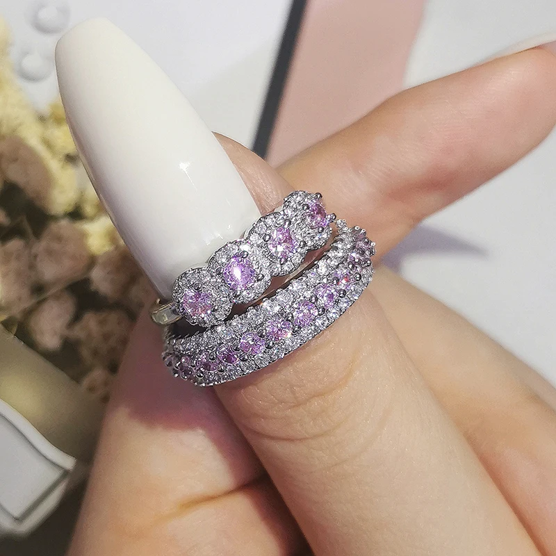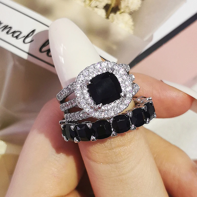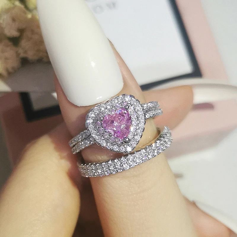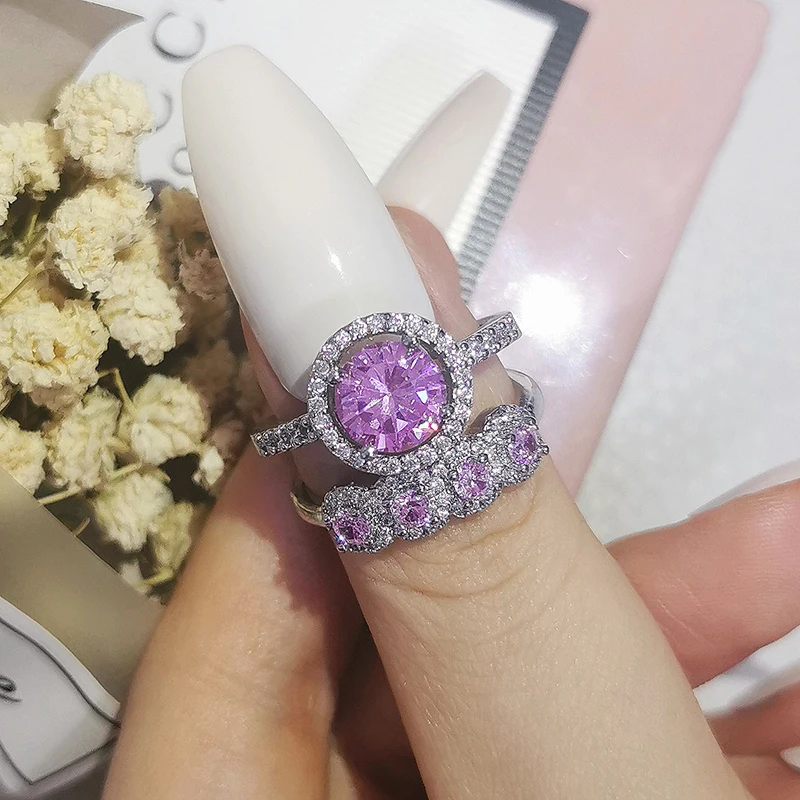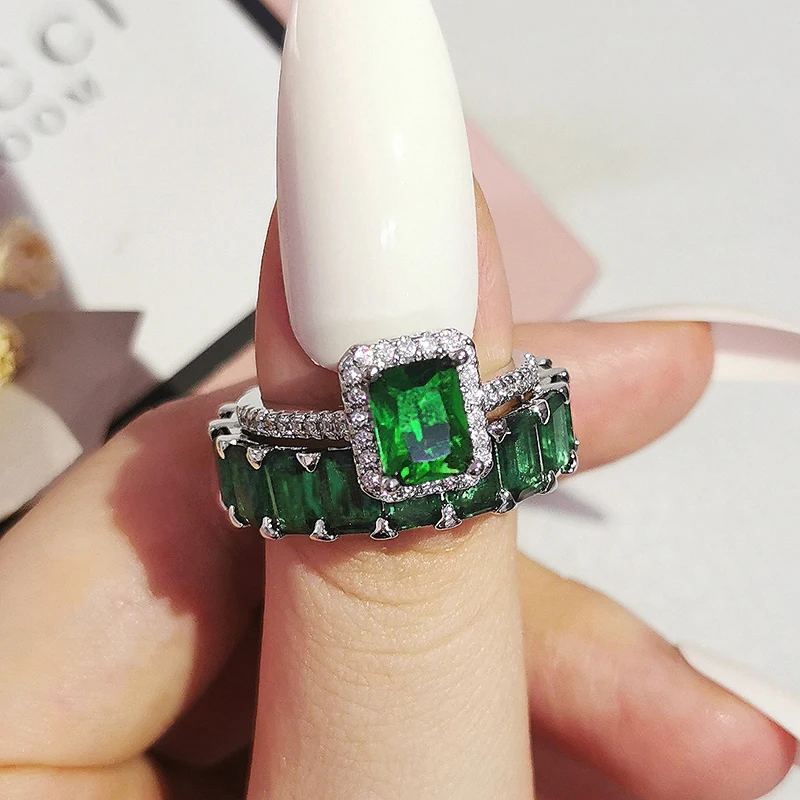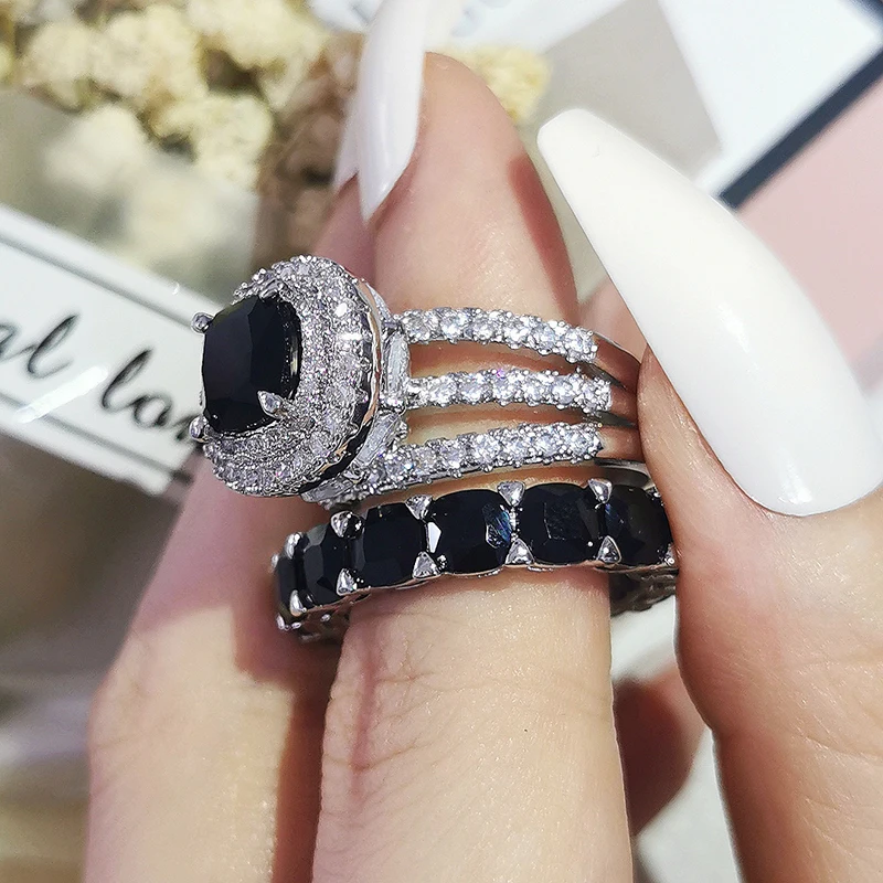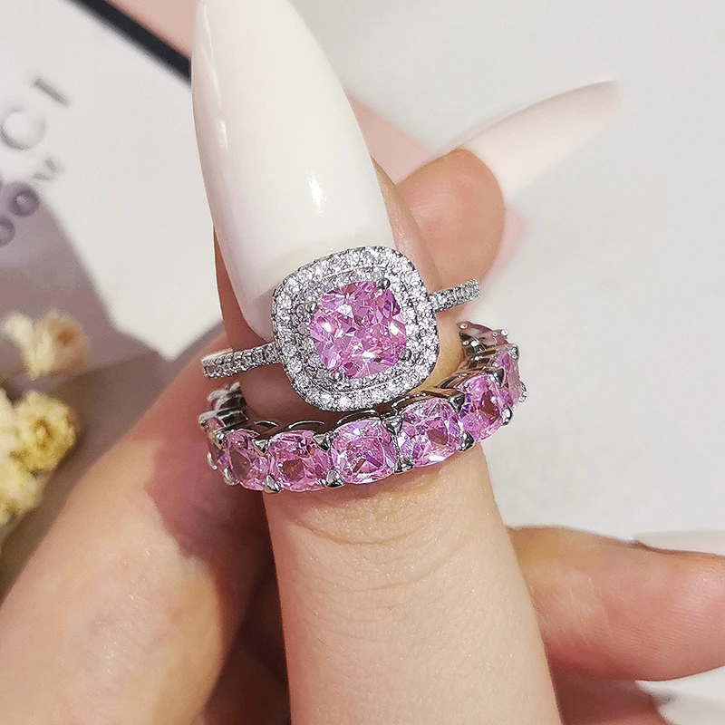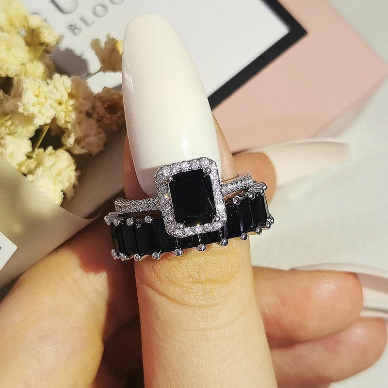 Luxury Real 925 Sterling Silver Oval Princess Cut Wedding Ring Set For Women Engagement Band Eternity Jewelry Zirconia R4975