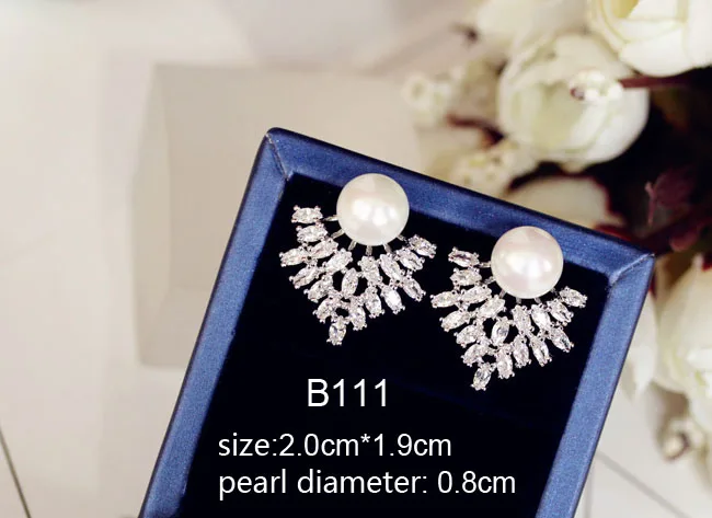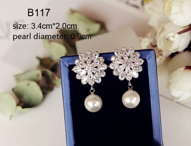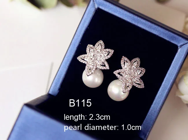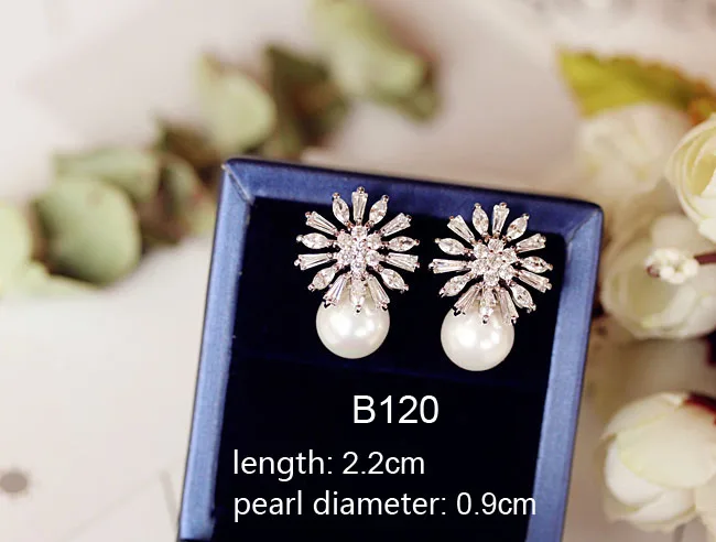 Luxury Vintage Flower Cubic Zirconia stone Simulated Pearl Earrings Long Drop Women bridal Jewelry Chandelier earrings