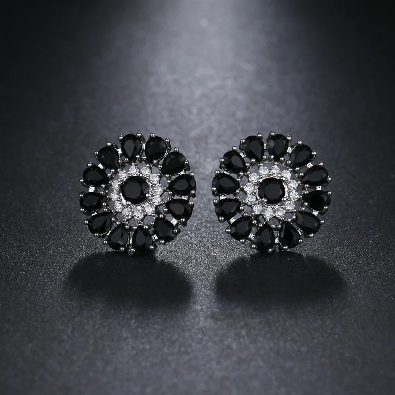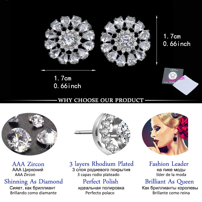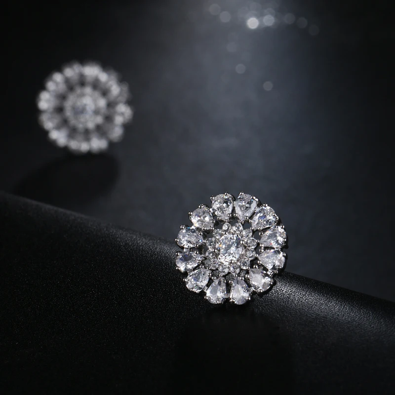 LXOEN Ethnic Green Crystal Stud Earrings For Women Silver Color Flower Studs Ear AAA Zircon Earrings Jewelry Gift Pendientes